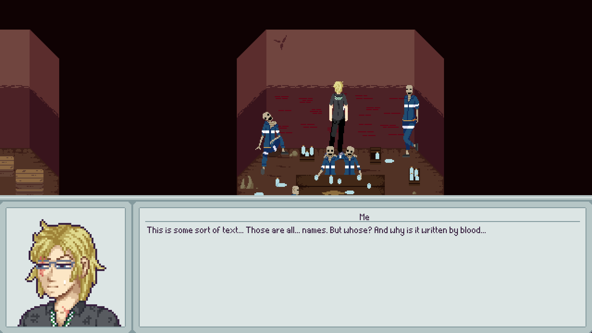 Да и начало стоит как-то более динамично сделать. Задумка хороша, но слишком бедная обстановка комнаты всё портит. Добавь деталей, которые бы рассказывали зрителю о том, что произошло, без слов. Чтобы понятно было, что произошёл какой-то пиздец у ГГ, и он еле живой остался. Вот прям историю из предметов, чтобы захотелось на паузу поставить и попытаться понять, что же там произошло. "Вот сломаная катана, ага. Значит с кем-то дрался на мечах" "Вот дохлая проститутка. Значит был бурный вечер." "Вот использованная аптечка, значит сам пытался подлечить себя." Это же первые секунды, которые увидит потенциальный игрок!!! Они должны быть самыми лучшими.