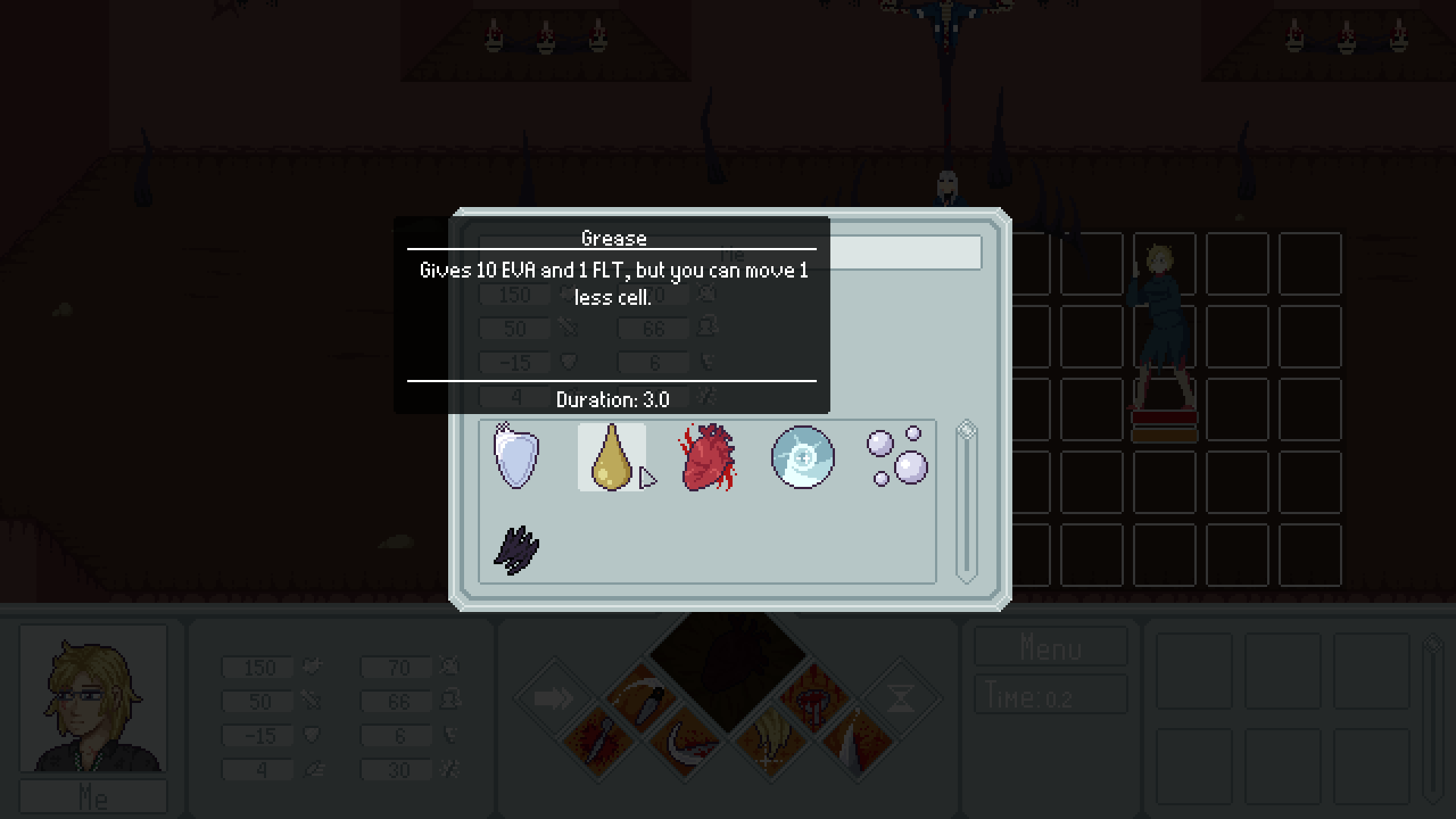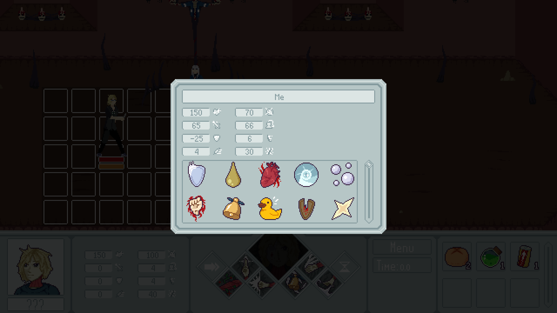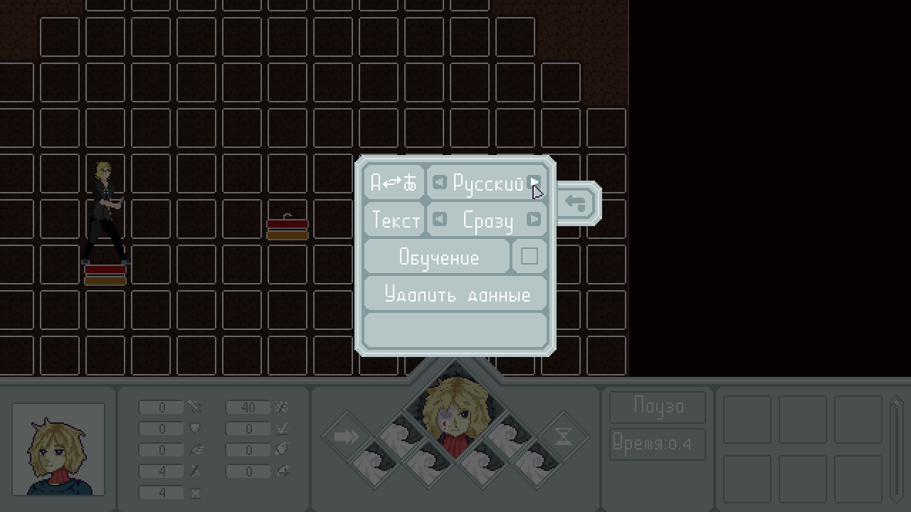 О нововведениях в демке: - добавлены новые статы и удалены некоторые старые - убраны аспекты случайности (точность, уклонение, шанс критического урона) - гипер умения преобразованы во вкладку особых умений - изменена система очерёдности ходов и расхода очков времени - персонажи во время боя могут проливать кровь, что, помимо всего прочего, влияет на игровой процесс - добавлены новые умения - добавлены новые статусы персонажей - исправлен ряд багов - общая полировка игры и QoL-добавления