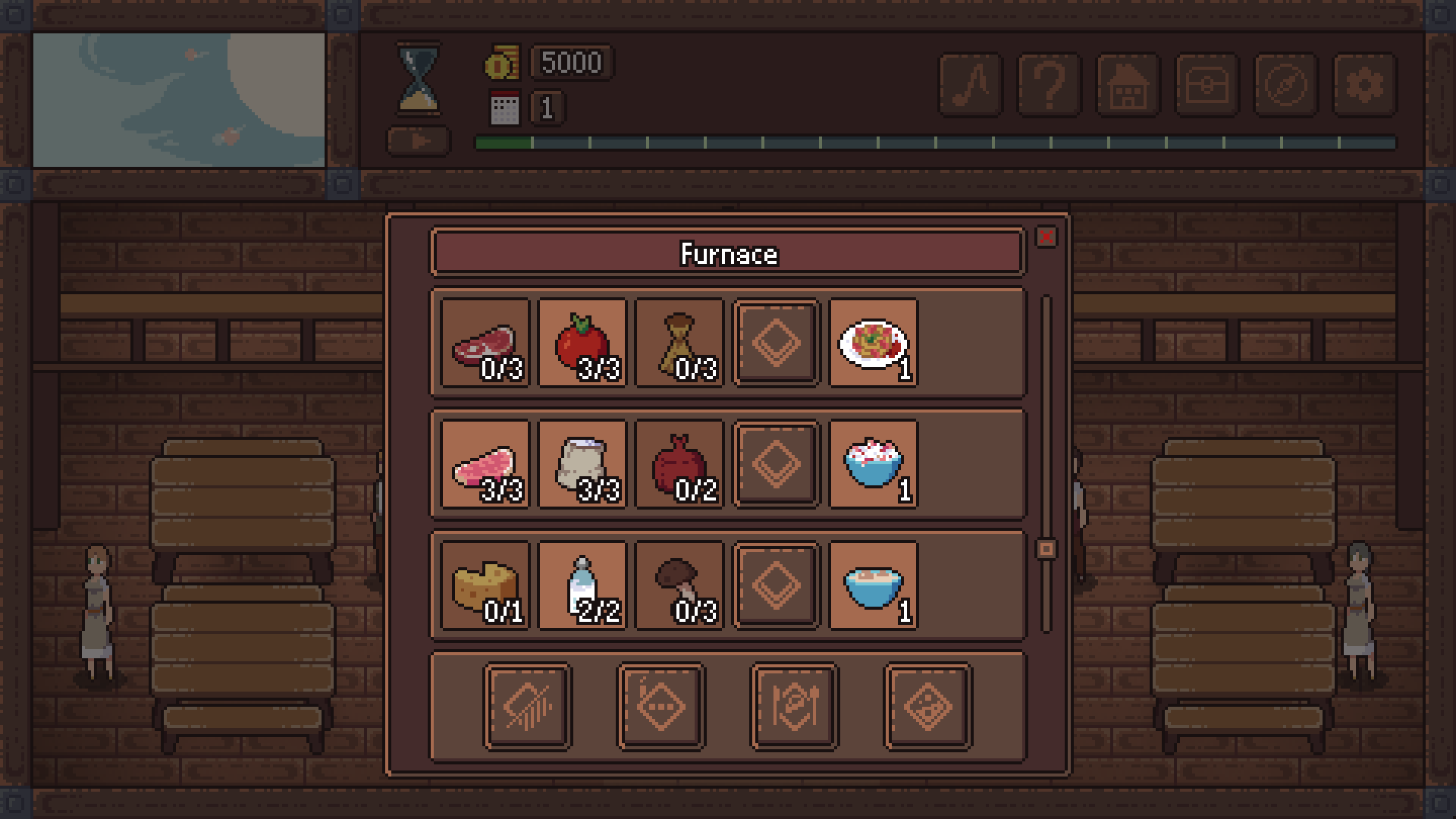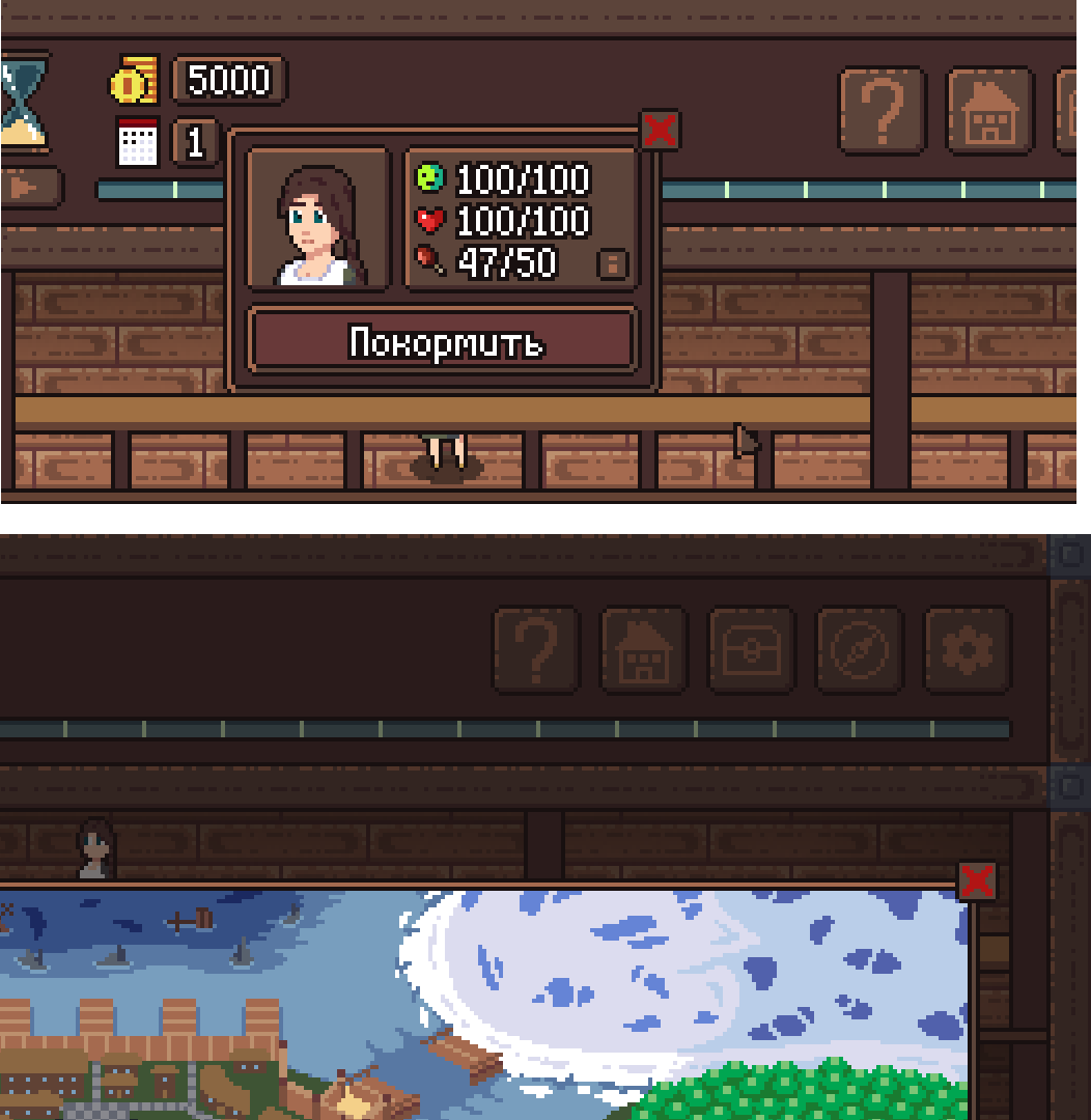 >>735609 >Изначально кнопка закрытия была больше, но потом я сделал ещё один спрайт поменьше для карточки героя. Потом решил удалить спрайт побольше, чтобы было меньше ебли. Короче подумаю, что делать. Можно сделать как на пике - главное поставь зону вокруг крестика побольше, чтобы не приходилось его пиксельхантить для закрытия окошка. А лучше всего - чтобы в туториале настойчиво говорили о нажатии правой кнопкой мыши дабы закрыть любое окно автоматом. >хоть это будет и в обход запланированной условности Проблема в том, что если тебе не выпадут нужные персы в первый же день, ты хуй дойдёшь до следующего тупо потому что не сможешь найти нужных ингредиентов. Т.е. с определённой вероятностью просто берёшь и рероллишь до усёру на старте, потому что знаешь что с банкиром ты хуй соберёшь достаточно разной жрачки, чтобы скрафтить блюдо. А такая система позволит даже с самыми безрукими персами добывать пропитание для остальных.