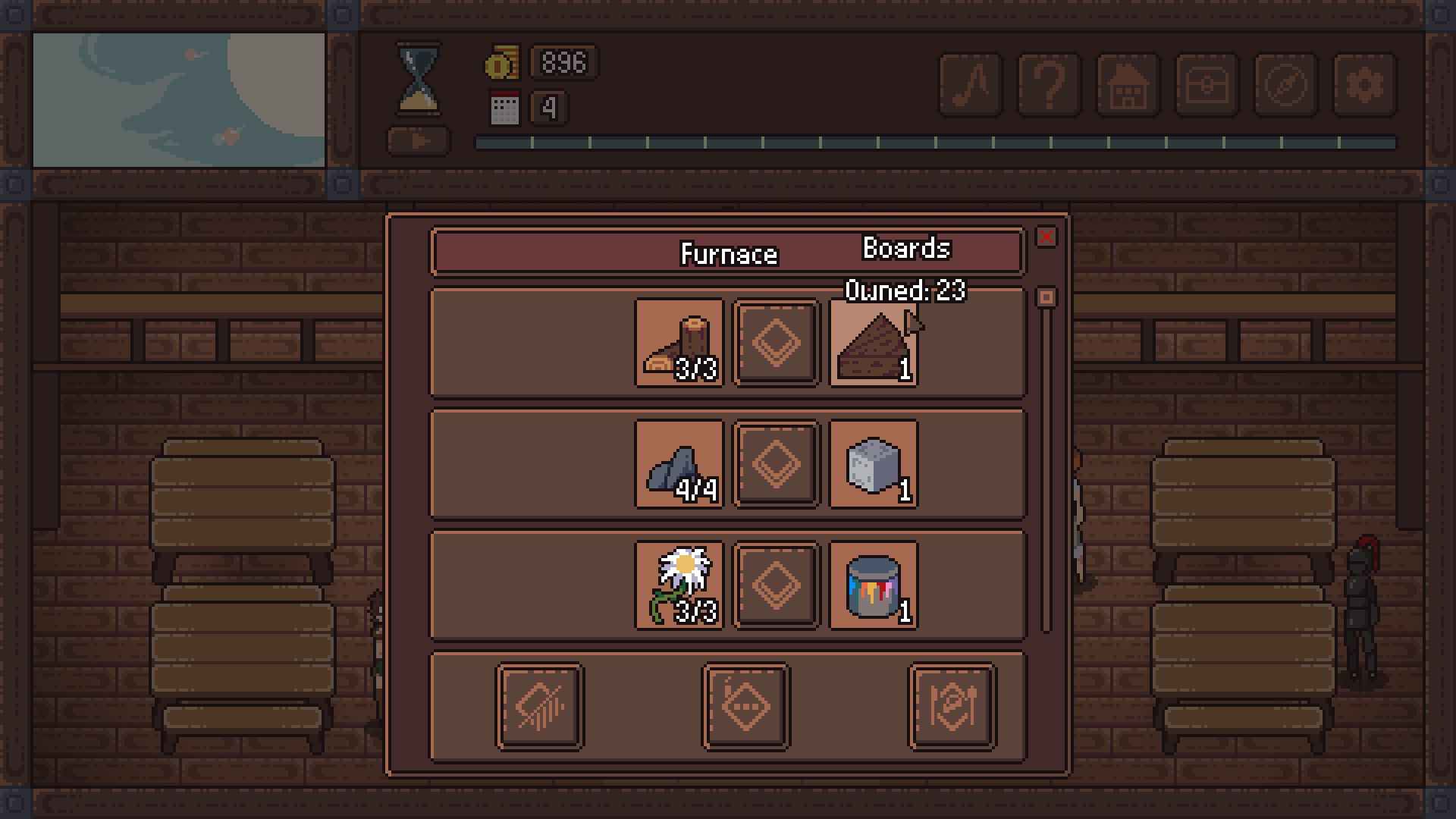 Блин, до чего же неудобно кикать по этоим одинаковым кнопкам в меню. Ты что, не мог камин для крафта в гостинице нарисовать? Места было мало? И отдельно верстак для крафта. И отдельно станок. Блин. Игра начинает причинять боль.