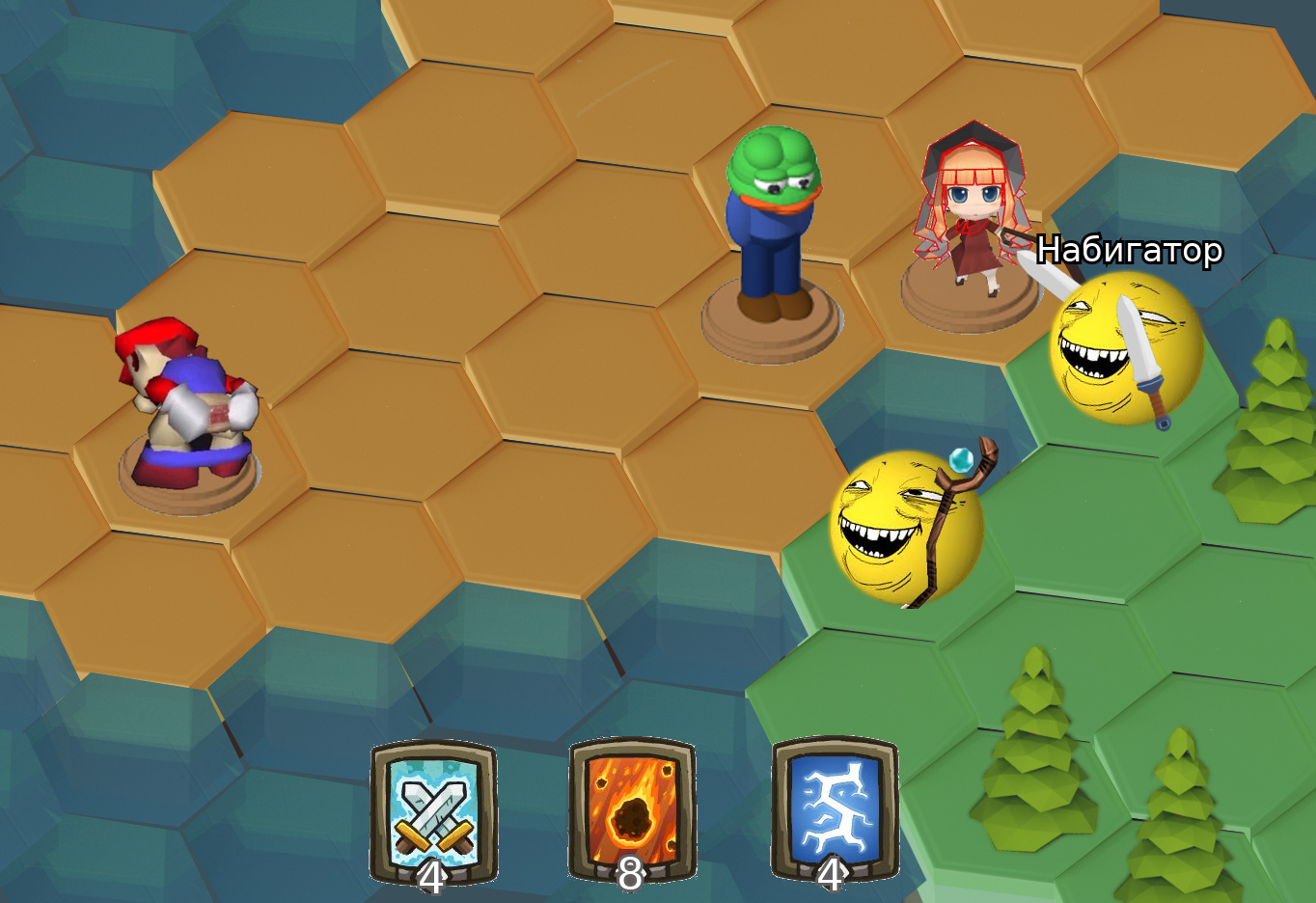 Но винда наебнулась, я расстроился, потому что сделал намного больше чем планировал просто для теста сокетов и ноды, пока что не оттаял, но планирую вернуться к этой идее. Хотя геймплейно это не так же интересно как вторая, да и многие моменты в ней я не продумал, в частности боёвку. В последний момент остановился на чем-то вроде battle brothers с гексагонами. Кстати да, еще рендер гексагональных карт по шаблону и рандомно успел сделать. Тоже с свг, подвязал спрайты, анимацию передвижения юнитов, а саму боёвку не успел. Третья идея для этой игры была разрушить стены между игроками, когда какими-то предметами нельзя обмениваться, склад игрока нельзя найти и так далее. Но там уже хитрые и упоротые решения, не вижу смысла расписывать, тем более, что это все равно не успел реализовать. Может если закрою слепые пятна в геймплее и не успею к тому моменту начать проект на анриал, вернусь к ней.