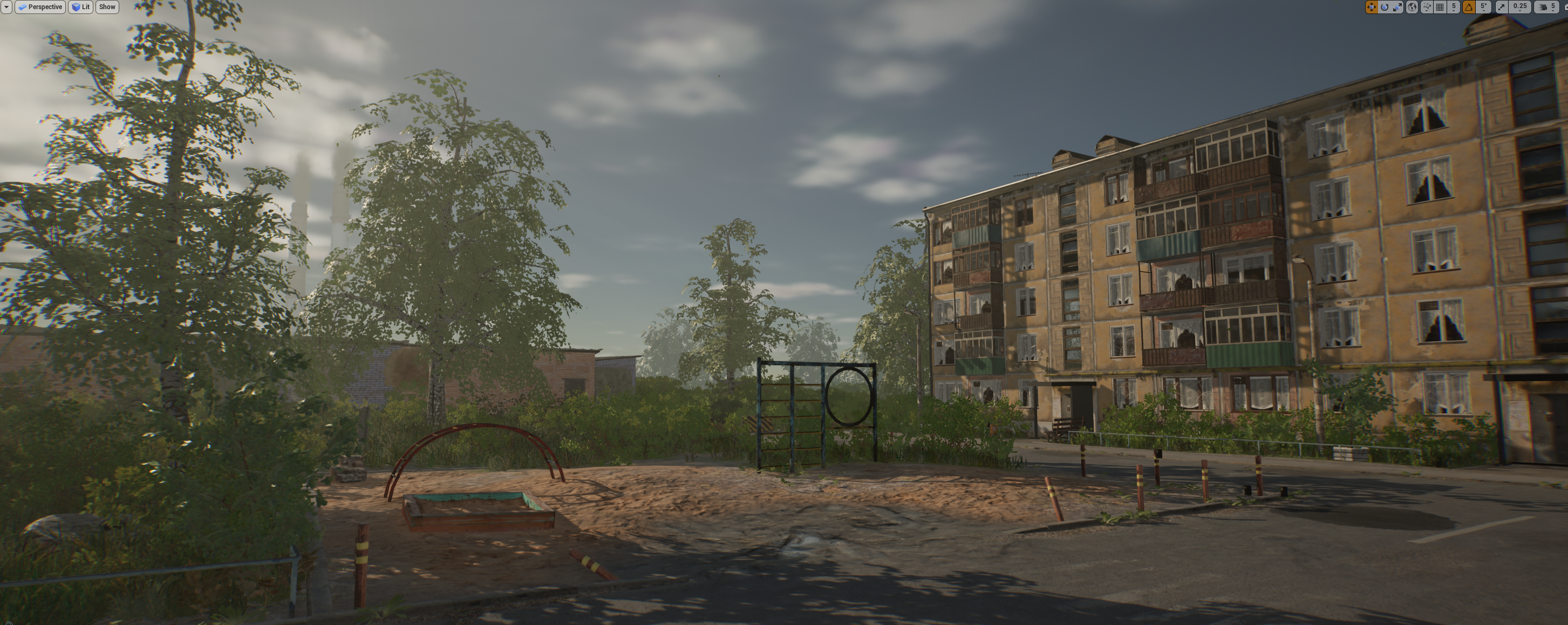 >>773824 Все еще работаю над этой локой. Картинку частично мылит Exponential Height Fog, DFS и все это вкупе с TAA. Примечательно, Bloom не выкручивал, как и остальные эффекты.