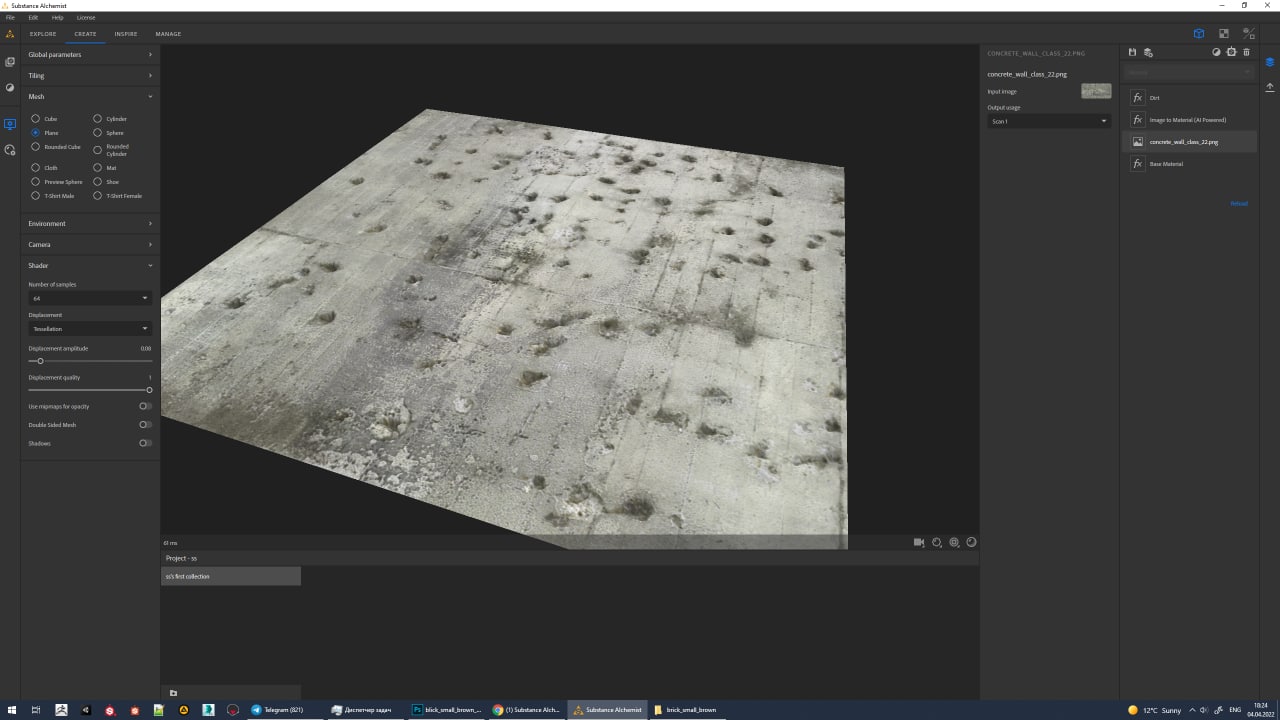 >>798546 Исправить что? Какой еще Alchemist? Он кривой. Roughness делаю всегда через Designer. Текстура без света, снимал в пасмурную погоду, убрал небольшие затемненные участки и все. NM и AO запек, конечно же.