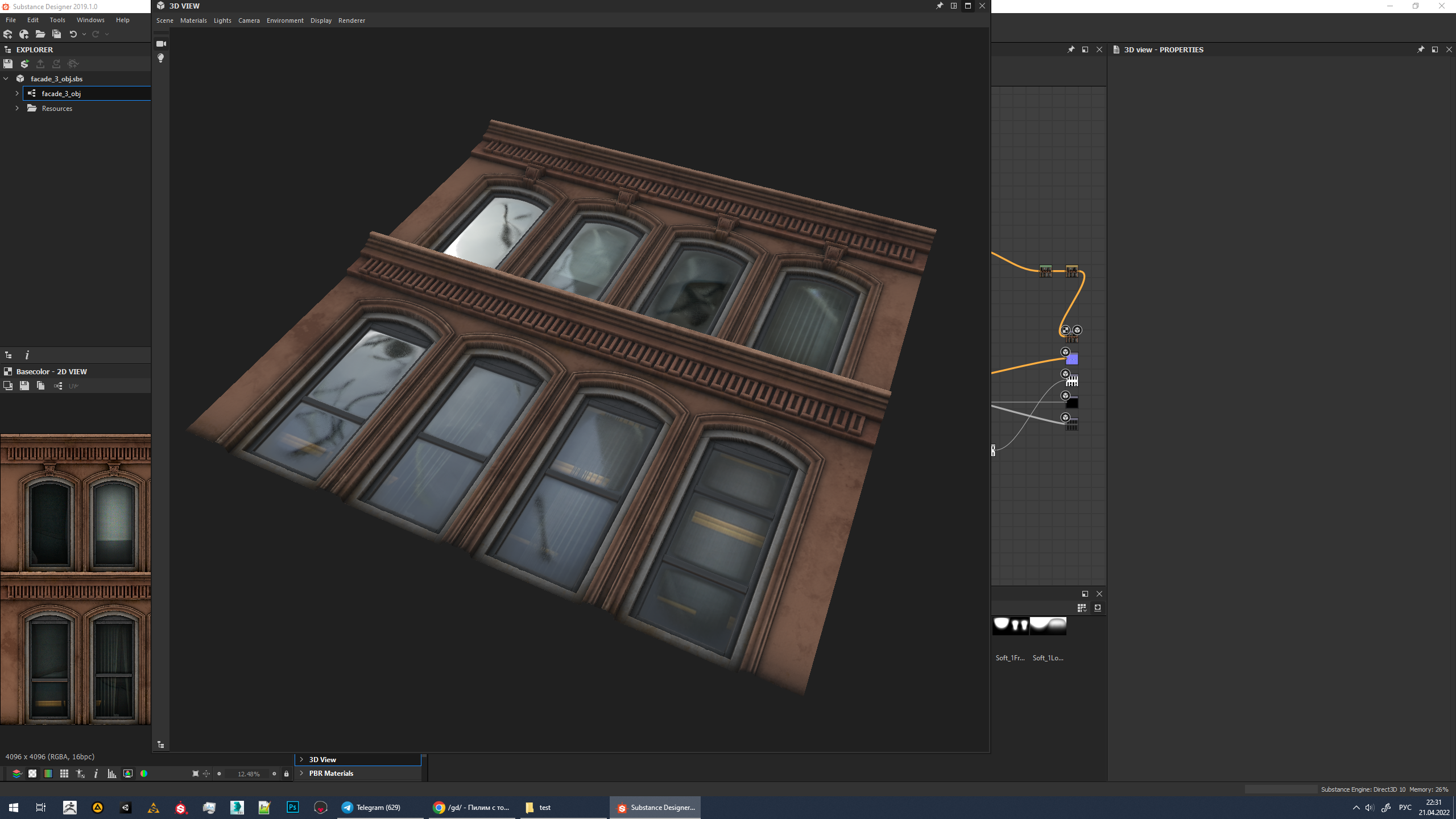 >>798580 я про то, что можно использовать фототекстуру прогнать её через designer как это сделал ты а по типу пикрилейта (то что у тебя) - создаю high-poly геометрию, запекаю на плоскость каты высот, а далее в substance designer её дорабатываю вполне хороший результат то что ты и делаешь, я вот это имел ввиду... (я просто запек карту высот и цвета альбедо в качестве color id для масок) В Alchemist иногда хорошие можно хорошие достичь результаты