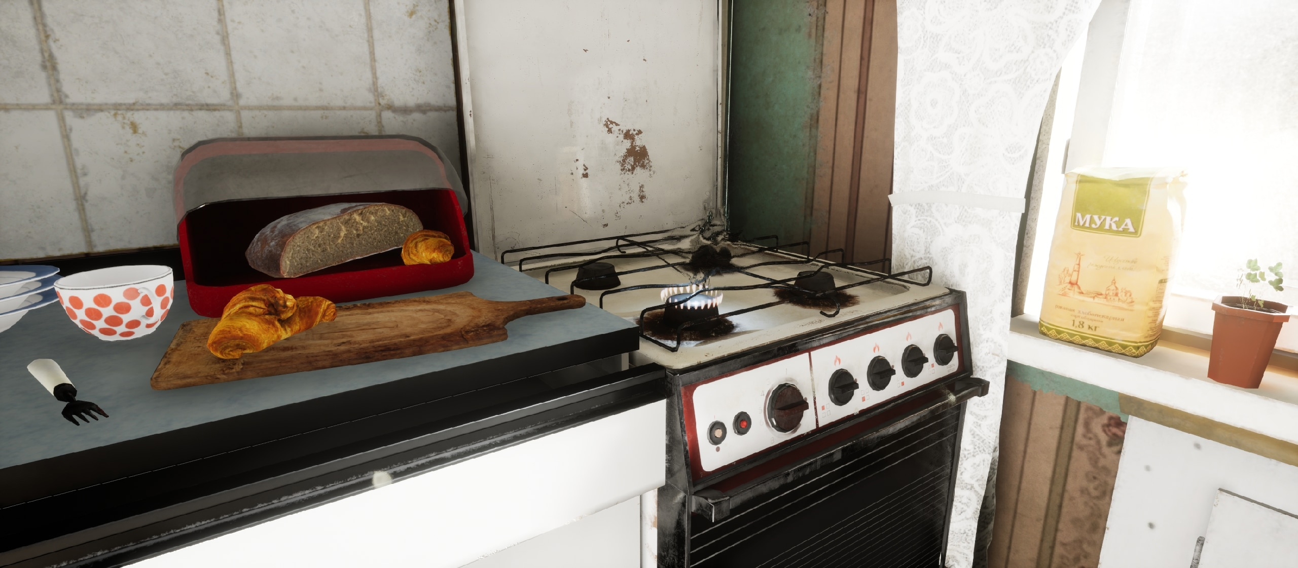 Блин, графон завезли, а игру не завезли. ПОТЕНЦИАЛ НЕ РАСКРЫТ! Я б вам накидал идей что можно сделать с геймплеем в отдельно взятой квартире, но вы или не осилите или еще 1-2 года пилить будете, а в стиме уже релиз на следующий год стоит.