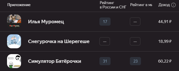 Чуть не забыл. Микро-отчёт по игре Скуф в Геленджике на ЯндИграх: две недели назад удолили её из котолоха за непосещаемость, зароботок 50+ рублей, 500+ установок.