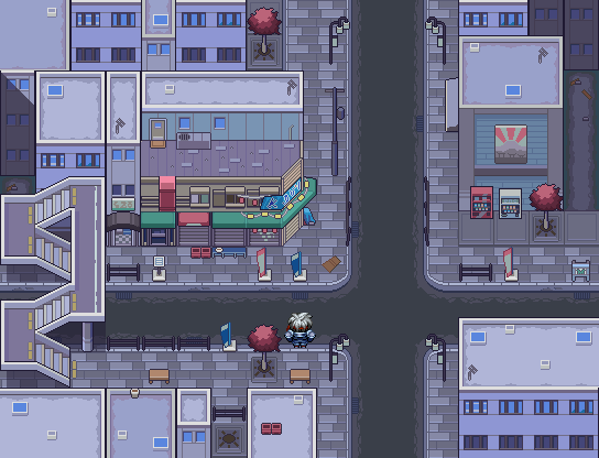 >>1021429 То, что у тебя на первых пиках, можно сделать и из простых тайлов, построцессингом. На первом накинуто псвеводосвещение - лучи. (Вообще говоря, на первом пике довольно много всратостей - например странные елки, под фонарем круглый люк бес перспективы, тени намешаны - где то они направо, под скамейкой строго вниз, под столом с кристалом вообще нет). На втором подобраны неплохие узоры для тротуаров, а из эффектов там есть градиент на крышах и псевдоосвещение перед окнами и дверями. Его можно сделать или наложив полупрозрачную картинку поверх, или обычно делают скрин уровня, загоняют в фотошоп и потом обрабатывают и используют как целую картинку https://www.youtube.com/watch?v=PvXt7BXtzMI