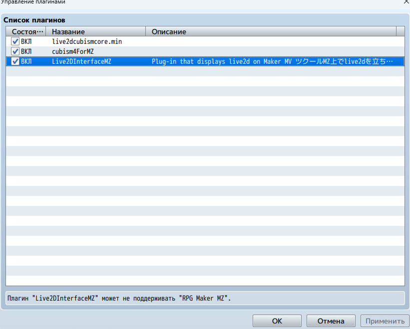 1. Создайте плагин Создайте новый текстовый файл и сохраните его как MOUSE_HOVER.js в папке js/plugins вашего проекта. 2. Активируйте плагин Откройте RPG Maker MZ Перейдите в Tools → Plugin Manager Нажмите Add Plugin Выберите ваш плагин MOUSE_HOVER Включите его (переведите в состояние ON) 3. Настройка цвета (опционально) Вы можете изменить цвет в строке: