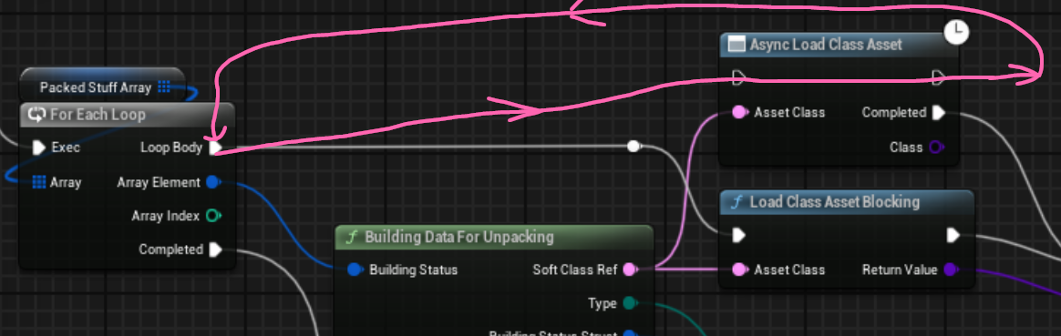 я это пишу, потому что у тебя там подозрительный енум Building Type. если ты просто внутри BPP_Building_Class здания просто свитчишься, прямо или косвенно ссылаясь на все модельки всех изб в игре, то толку с такого асинка будет мало
