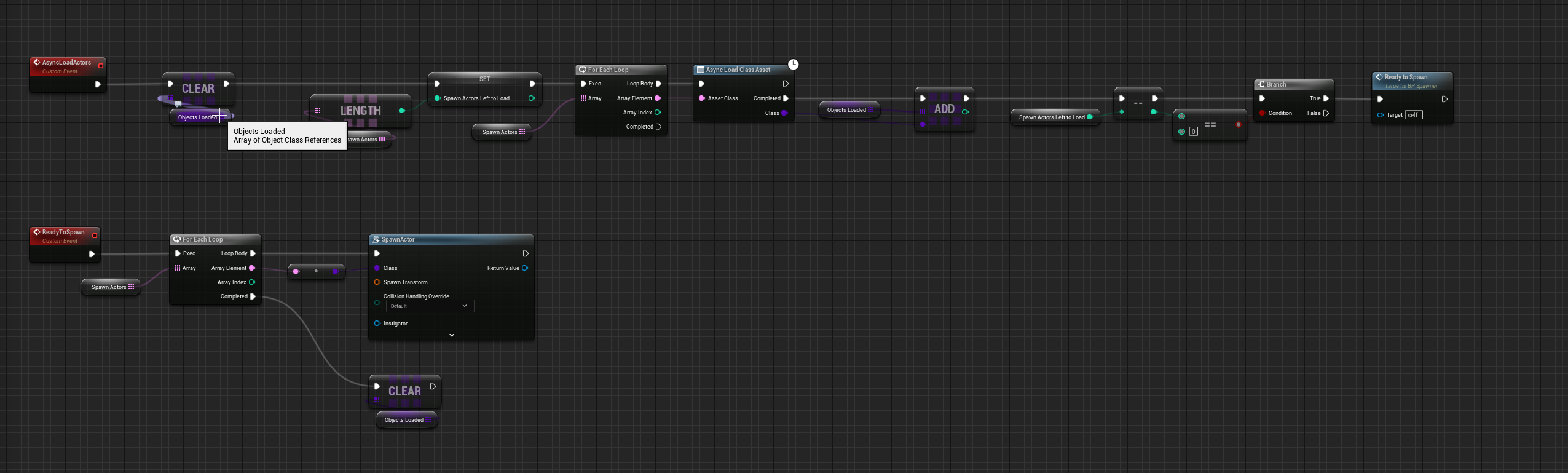 >>933883 >Ну и мне еще по-любому предстоит столкнуться с ситуацией когда этот асинк загрузится где-то в следующих кадрах а я об этом не знал Не ожидал что это произойдет так быстро, но вот в цикле видимо нет вариантов кроме блокинг загрузки? А то он у проходит до конца и чистит массив из которого нужные данные для спавна берутся, а потом происходит спавн с пустыми данными. Часа два ебался прежде чем это осознал, лол.