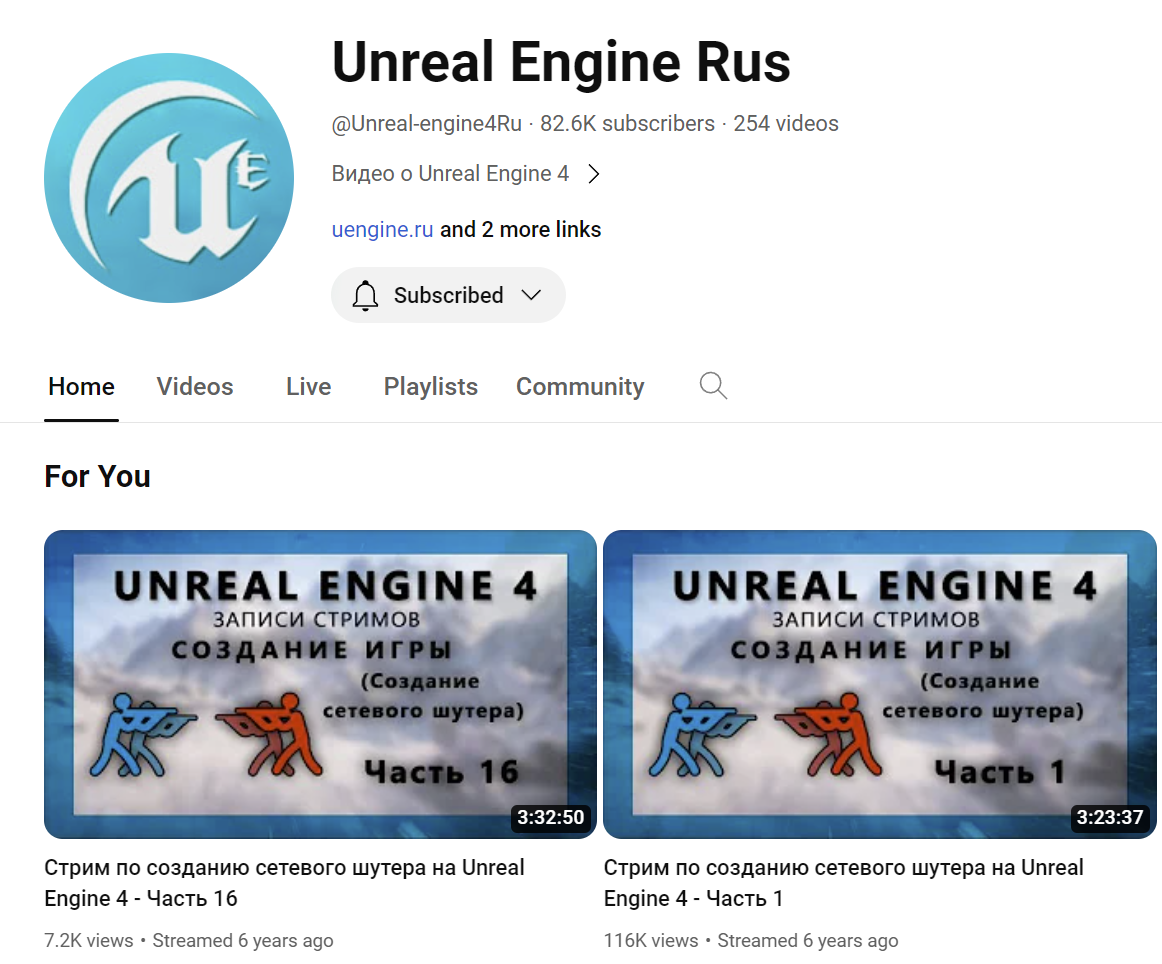 Канал на Ютубе. На 97% порожняк, на 3% - источник ценнейших материалов с инфой от разрабов движка, которой больше нигде нет. https://www.youtube.com/@UnrealEngine