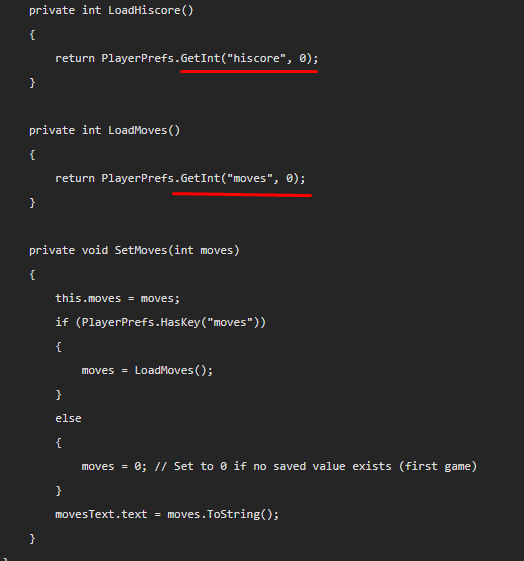 >>942593 Вот смотри: сейчас в классе TileBoard я создал переменную movesCount. Инкременирую ее в этом классе - и она увеличивается. Потом из класса GameManager через синлтон запрашиваю ее: moves = TileBoard.instance.movesCount. Казалось бы, почему она в этот-то раз не грузится? В чем здесь логическая ошибка, и как переписывания кода поможет мне это понять?