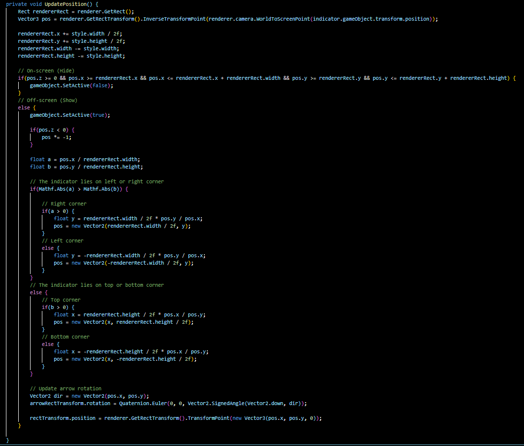>>943675 >Вычисли угол между ними Как именно? И как ты его используешь? Vector3.SignedAngle я уже пробовал использовать, у меня не получилось из полученного угла правильно высчитать положение иконки на экране. Только с Mathf.Atan2 и InverseTransformDirection что-то вразумительное получилось, но всё равно не точное решение.