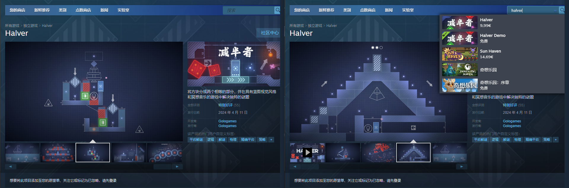 Halver — это захватывающая, основанная на физике, головоломка-платформер с большим количеством логики и прыжков на точность. Главный герой может разделять выстрелами блоки пополам, чтобы решить загадки и добраться до выхода с уровня