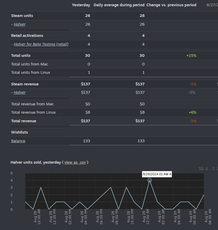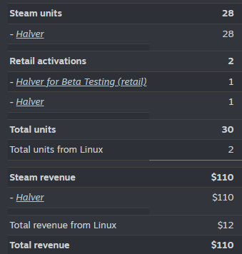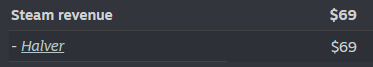 Чел, ради прикола посчитал твой доход с игры тут: https://steam-revenue-calculator.com/ Получилось чуть меньше штуки баксов. Насколько реалистичные цифры?
