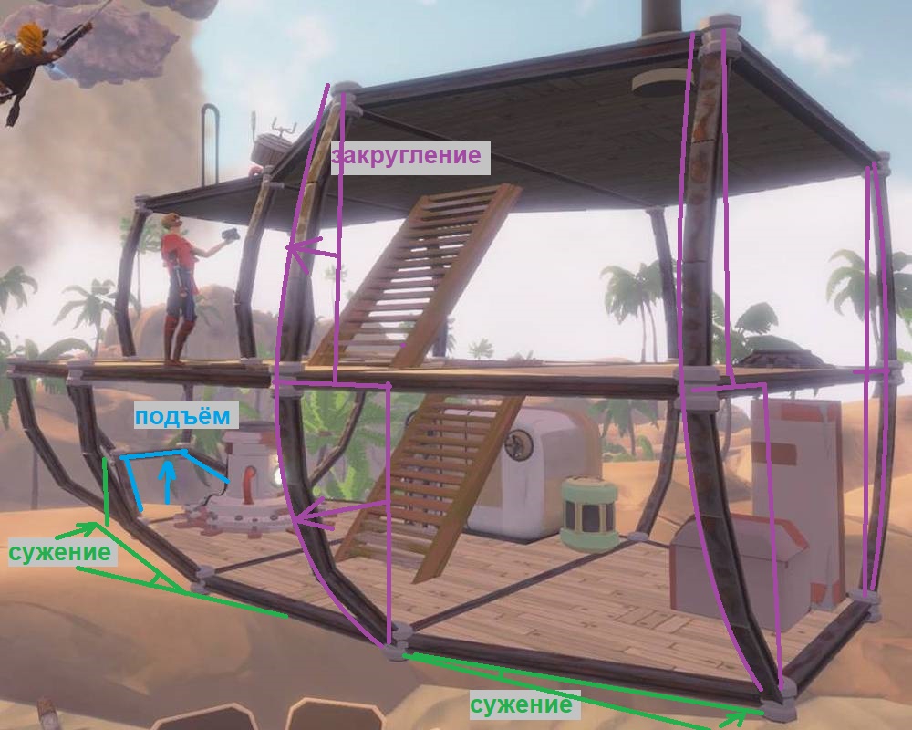 Хотел игру со строительством и ремонтом летающего транспорта "из говна и палок" или "тяп-ляп", при этом хотелось разрешить строить как угодно и где угодно без ограничений (отдельный 3D редактор каркаса в столе крафтинга сразу идёт мимо). Но на практике оказалось, что "строить как угодно без ограничений" (тяп-ляп) означает кучу проблем как игроку, так и игре. Намного удобнее строить, когда игра помогает тебе привязкой к чему-либо, и намного проще решать технические вопросы, когда дизайны транспорта имеют строгие правила.