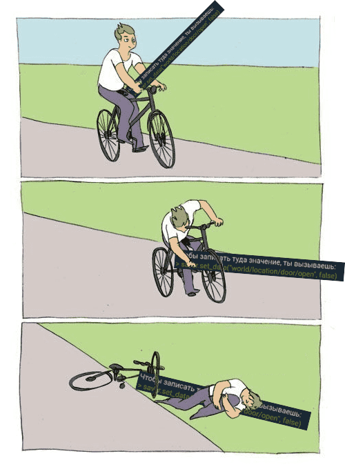>>955025 У анона проблема с пикрила: 1. Игрок встал на площадку. 2. Пытается взять площадку в руки. 3-а. Площадка толкает игрока вверх? 3-б. Площадка проходит сквозь игрока? 3-в. Площадка вылетает из-под ног? 3-г. Площадка не даётся в руки? 3-д. Площадка уменьшается?