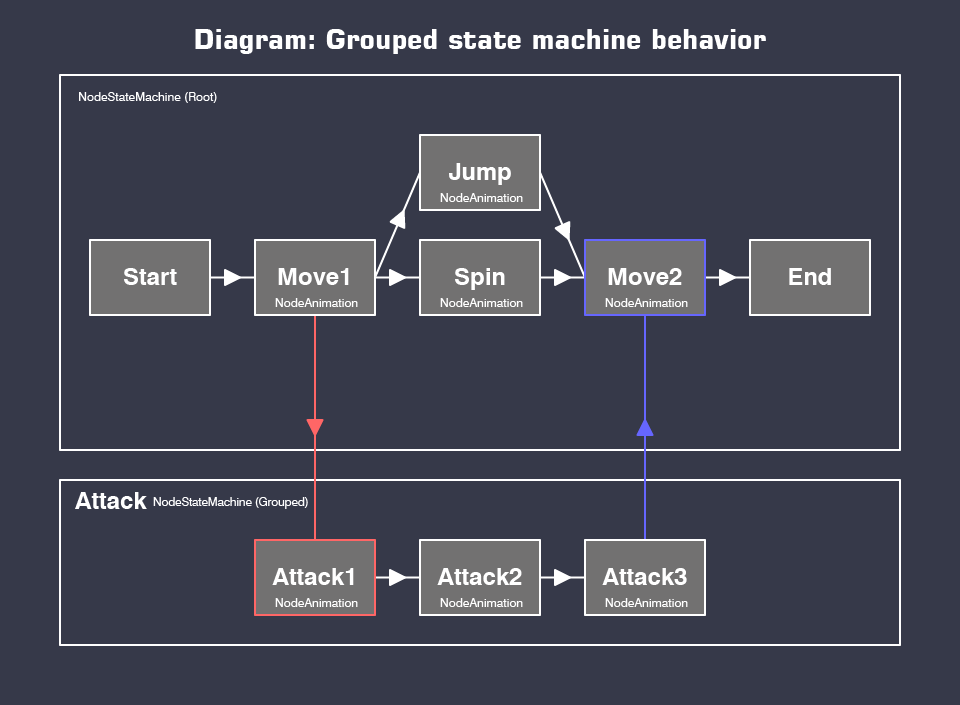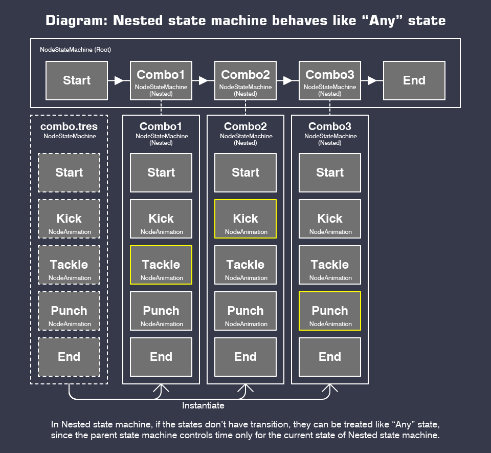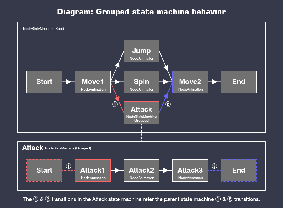 С остальными обычными анимациями у меня проблем нет, такими как ходьба вперёд или бег, даже переходы между ними получаются легко, даже комбинации разных анимаций, типа действия руками и при этом переход анимации ног из одной в другую. В этих случаях просто оперируешь готовыми анимациями и настраиваешь их всячески.