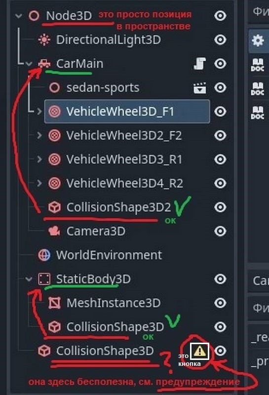 >>958330 >модельки как правило сложнее чем их коллизии Для ландшафта имеет смысл тримеш (ConcavePolygonShape3D) использовать, чтобы он повторял визуальный меш, если нет возможности использовать HeightMapShape3D (у неё свои нюансы). Для дорог с частыми ямами, насыпями и бордюрами тоже тримеш лучше форму повторит, чем куча простых шейпов. Мне кажется, не стоит экономить на шейпах проходимой поверхности, чтобы ноги персонажей и колёса машин не проваливались "в текстуры" и не висели в воздухе. Экономить можно только на объектах, к которым персонаж подходит, например, статуя, стена, отвесная часть скалы - к ним нет никаких вопросов, если игрок не может подойти вплотную к чисто визуальной впадине.