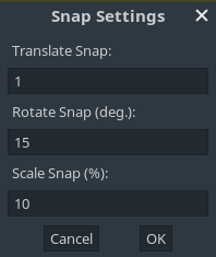 Объясните, как изменить шаг смещения при привязке? А Анрыле есть конкретный выбор шага в юнитах, а в Годоте ничего не нашёл и не нагуглил. Дефолтный шаг равен 1 метру.