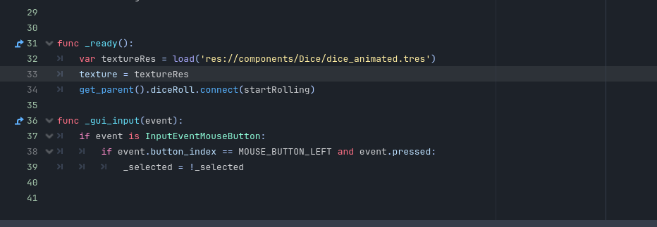 >>958260 >как сделать разный collisionshape в зависимости от анимации? Создаёшь в новый скрипт. В скрипте делаешь: 1. @export... для спрайта и всех коллизий. 2. Метод animate(анимация) для управления извне. 3. В методе вызываешь play() у спрайта. 4. Одновременно с этим переключаешь disabled: >for c in collisions: if c != current: c.disabled = true >current.disabled = false Скрипт можешь повесить на отдельную Node в сцене игрока, либо на самого игрока/персонажа. В первом случае скрипт игрока должен получить ссылку на этот скрипт, т.к. управление анимацией через него.