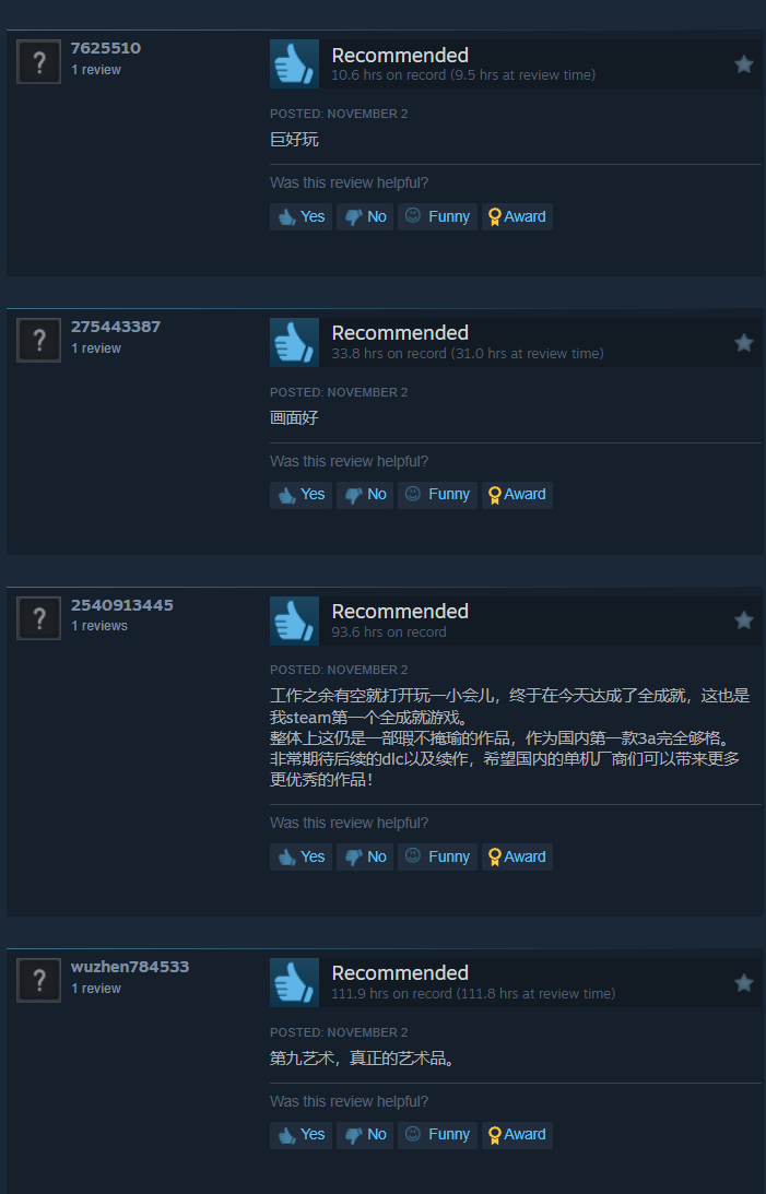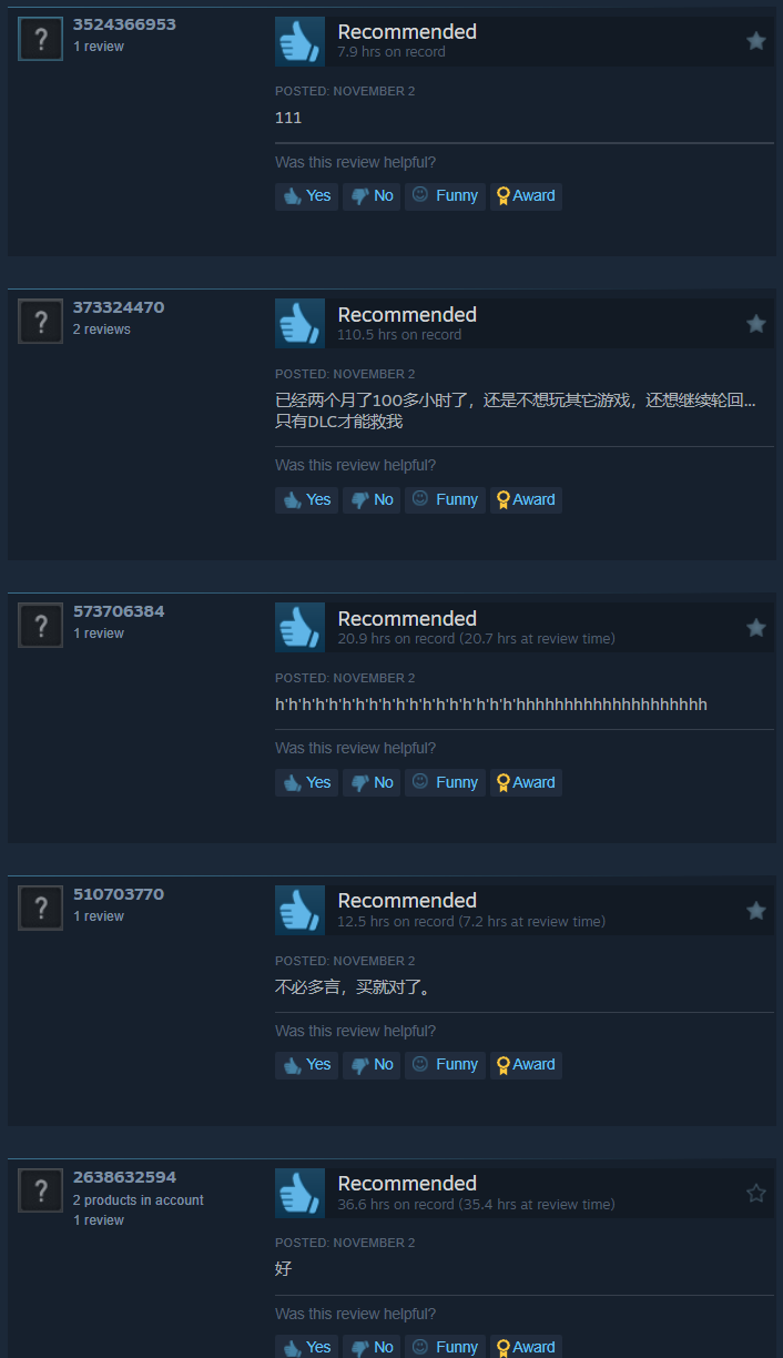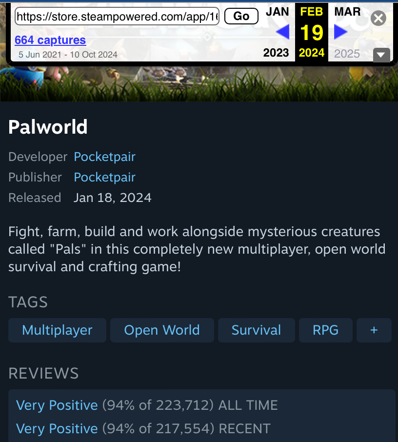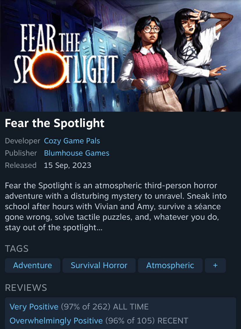 лично я думал лучше будет. что игра окажется в мировых трендингах, 1.5к+ отзывов за неделю, кокс, шлюхи, прощайте неудачники. но получилось как у зуковски - сферическая в вакууме хорошо продавшаяся игра на 300+ отзывов. я пробежал на релизе на легком, у меня клешни, когда оценка была 100% положительных на 20 отзывов, игра в целом пушечная, но коротка, о чем вскоре начали жаловаться в отзывах. что, кстати, повлияло на максимальный онлайн. и возможно на алогоритмы трендингов