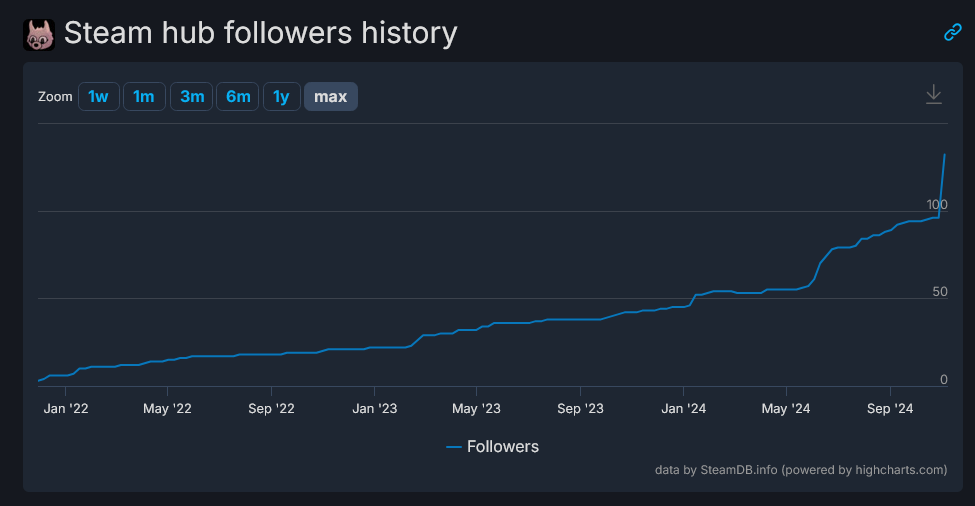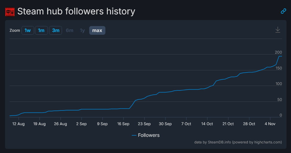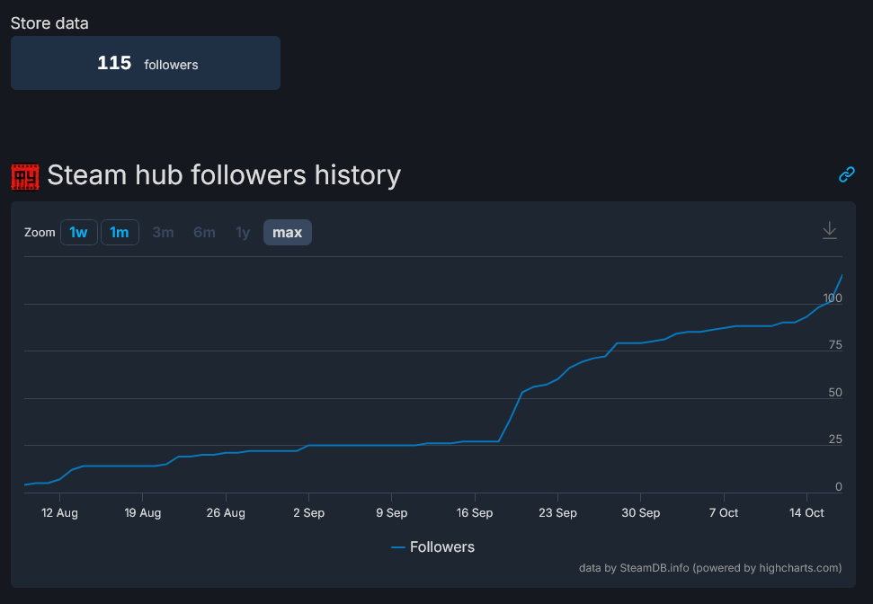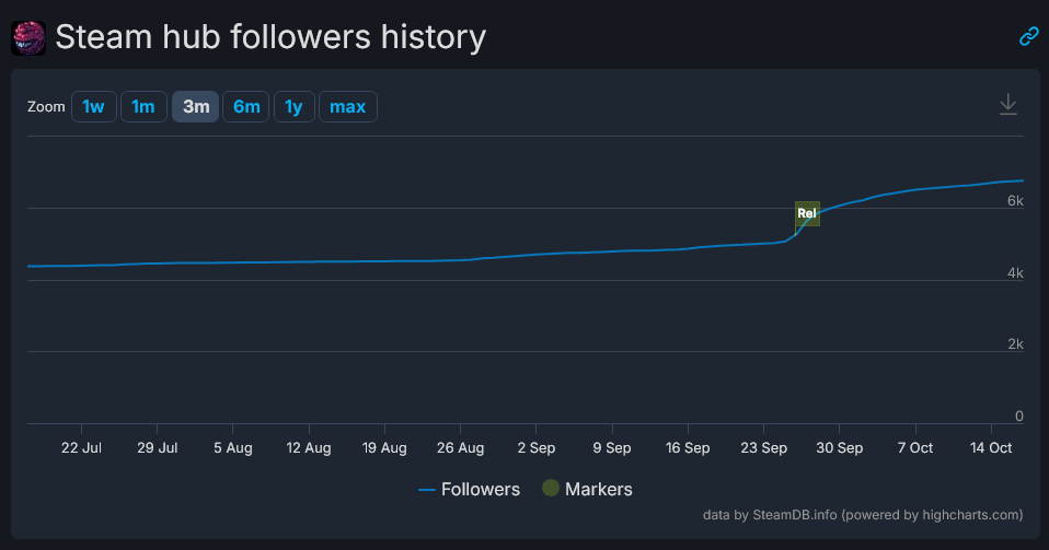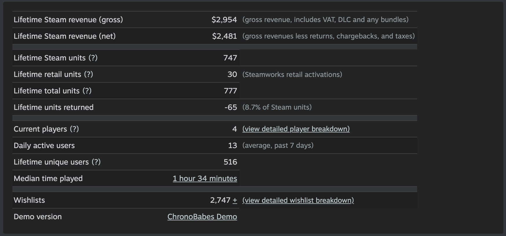 The biggest surprise? The wishlist growth after launch. It’s been significantly outpacing actual sales. We started with 1,200 wishlists and now we’re sitting at almost 2,800. My theory? People are waiting for a sale.