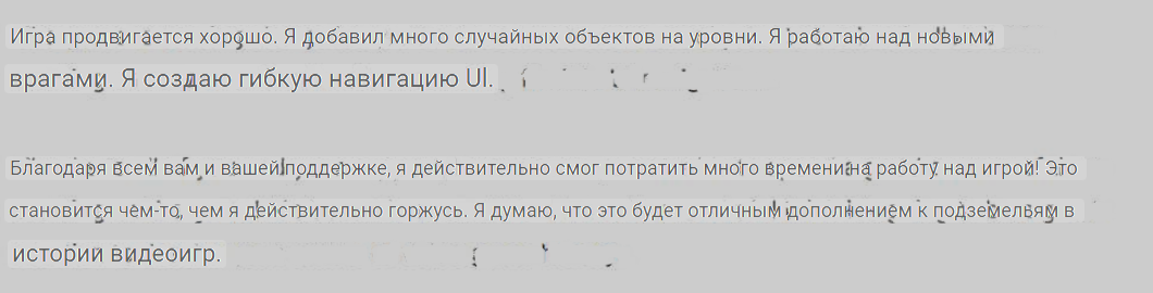 >>985190 Самое главное, что ему понравилось: >Overall, the experience was enjoyable, and I hope it wasn’t wasted. Game development demands significant psychological stamina, and seeing a game through to completion is a massive challenge. Creating the MVP was the easy part, but that’s just 3% of the work—everything else involves daily routines filled with tweaks and testing. And yet, for some reason, I like it. I have no desire to return to web development!