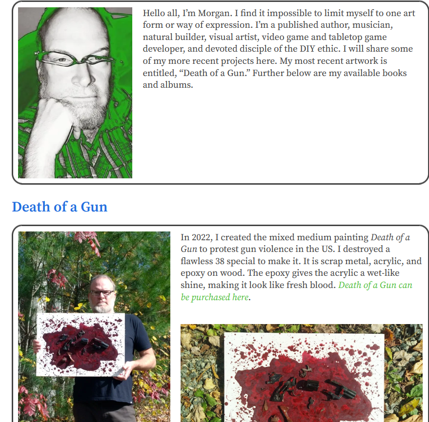 >>980929 Ему лет 50 он музыкант, потому что у него есть 1 выпущенный альбом https://www.youtube.com/watch?v=VxQXiOSazQo Он художник, у него есть арт проекты, например против оружейного насилия Он писатель, у него есть выпущенный роман, а также несколько книг по экологичной жизни на природе Он бизнесмен, он зарабатывает строительством домов из природных материалов, например мешков с землей. А теперь вот еще и геймдев, как настолок так и видеоигр на GDevelop Ну то есть так то он уже интересная личность, просто не успешная