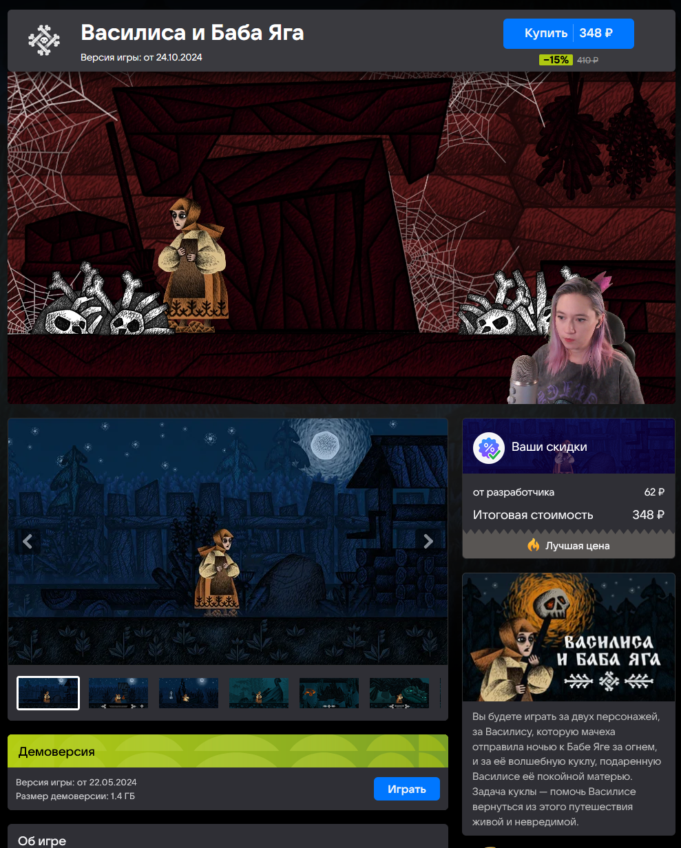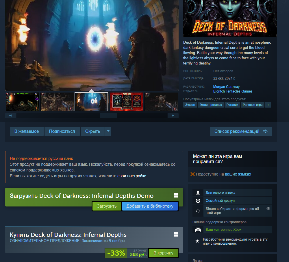 2. Отсутствие какого-либо маркетинга. Игра есть, её возможно купить на страничке, и... Всё на этом. Тут разработчик тихонько выложил свою поделку и тихонько скрылся с радаров, чтоб его не заметили. Надеялся он на удачу, алгоритмы площадки, либо сарафанное радио - непонятно, но он даже не делал попыток рассказать об игре своим родственникам.