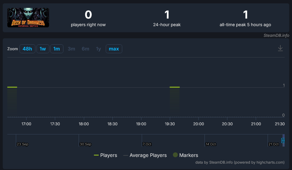 вот есть такой проект от авторов INFRA - Obenseuer 2018 года. набрал 30 отзывов с 70% положительных и сдох на 5 лет. прям совсем сдох. раз в 2 месяца кто-то поигравший в инфру зайдет на страничку разраба, увидит это поделие, попробует, расплюется, оставит отрицательный отзыв и на этом органика всё