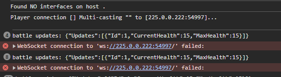Сделал вебсокеты, запускаю webgl билд все работает, сообщения читаются и пишутся. НО постоянно пытается сделать player connection multicast, куда-то законнектиться и получает ошибку.