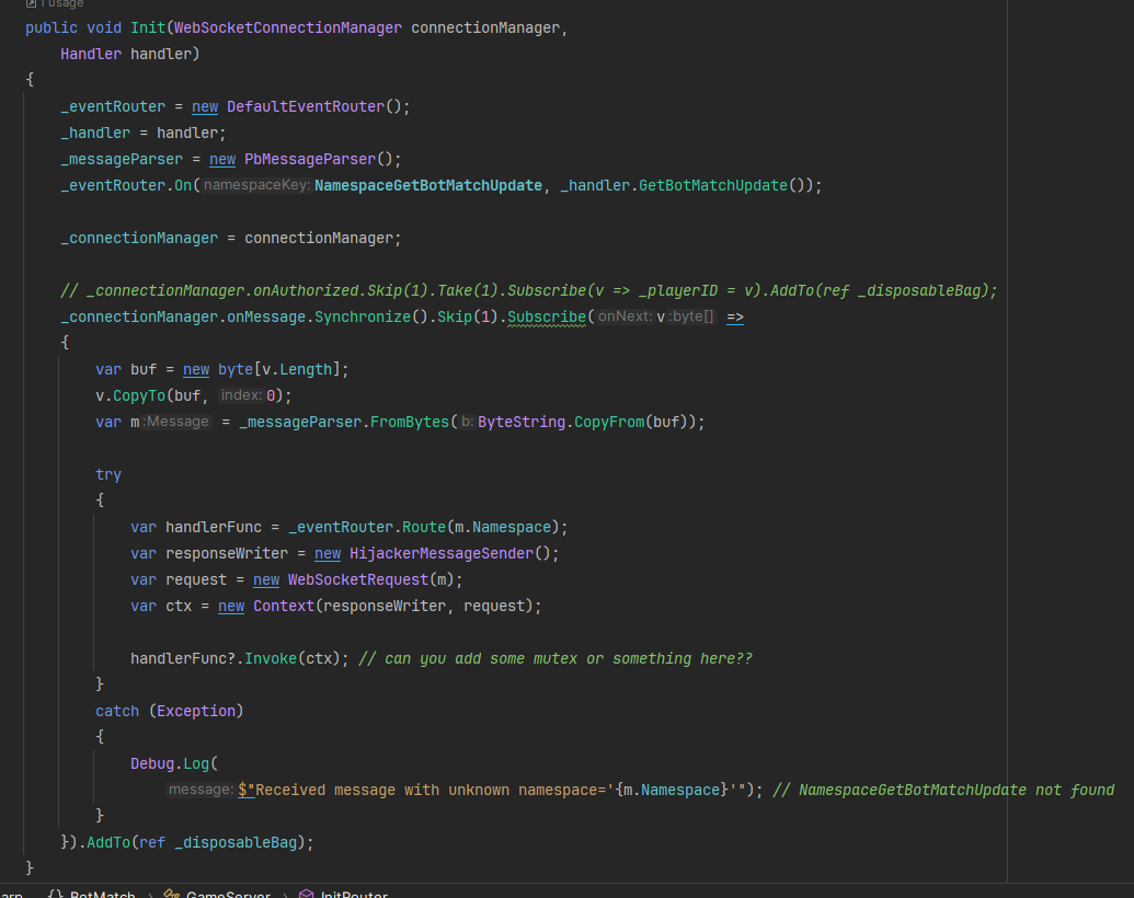 Скорее всего какой-нибудь датарейс поймал, но где я вообще хз. Роутер ивентов неймспейс => обработчик на пике 3. Я уже и Syncronize() добавил и в буфер перекопировал. Сам роутер под синкмапой.