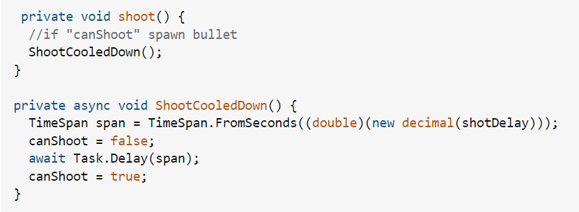 >>989794 > >Как ты это реализуешь? > С помощью таймера, очевидно же. > https://learn.microsoft.com/en-us/dotnet/api/system.timers.timer Лол, ну так делать это уебанство. Тебе надо со временем взаимодейстсовать только через апи юнити, т.е. тут придется это прокидывать. Но если сделать свой нормальный хелпер-таймер который будет в апи юнити работать то пойдет как идея.