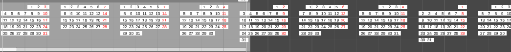 >>991324 >>991247 Блин, этот календарь сводит меня с ума, вроде простая вещь Если генерирую на 90 дней, то в четвертом месяце такой ебанутый отступ Если генерирую на 900, то он все далет красиво как и должен