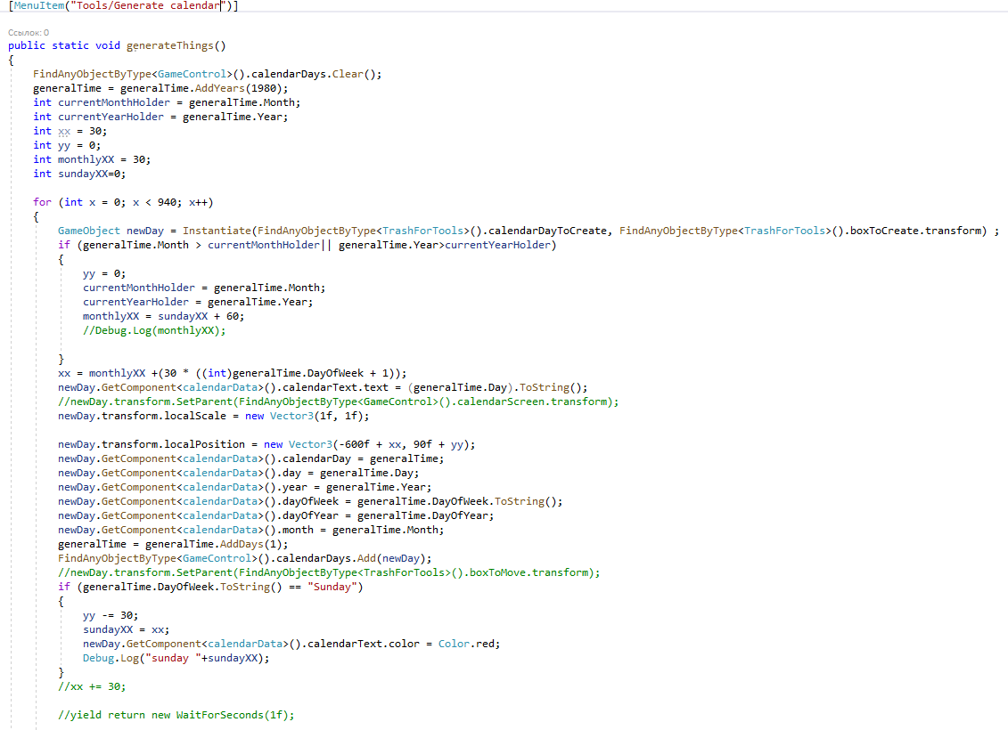 Вопрос, создал заранее кучу обьектов с переменой(календарь делаю, хули) System.DateTime Когда прогонял скрипт создать все, в каждую записывал свою собственную дату. Через дебаг.лог проверял достовая из каждого, все записывалось нормально Но, когда запускаю саму игру, то System.DateTime в каждом созданом тогда обьекте обнуляется(то есть первое число первого месяца первого года)