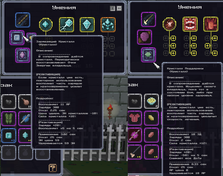 >>995073 -Доделал новый класс "Кристаллист" -Сделал микроквест, чтобы разблокировать новый класс "Кристаллист" -Кристалл-Страж может быть генератором для восстановления Энергетического Щита и ЭН -Сделал новые маленькие панели для питомцев (добавил настройку для использования старых)