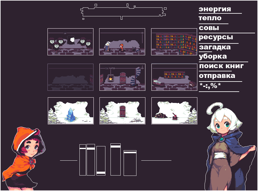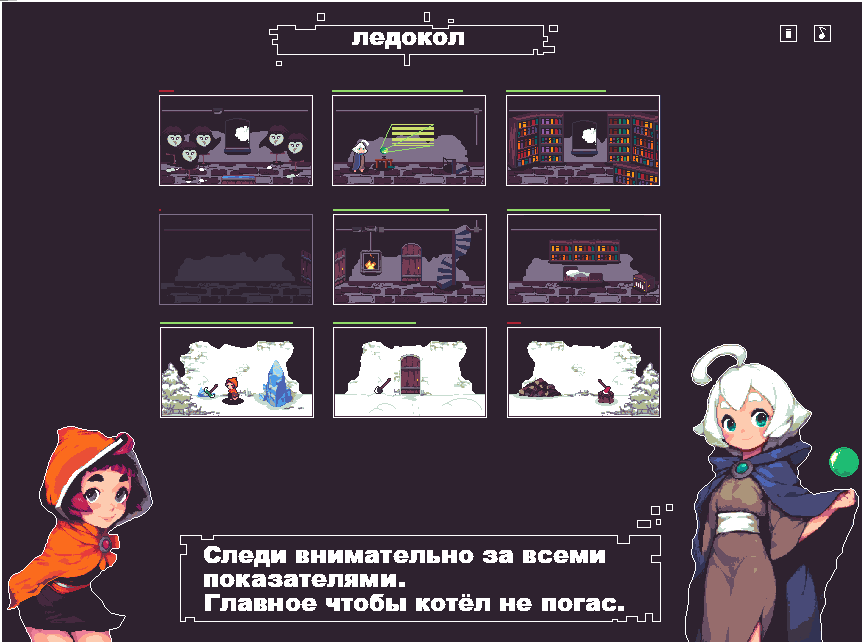 >>990011 Кликаешь на фотокарточки чтобы поддерживать жизнеспособность библиотеки. Где лёд на воду долбишь, где котёл топишь, где просто спишь. Небольшой сюжетец с тайной комнатой и всё.