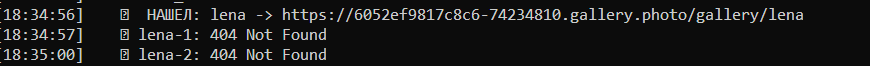 https:// 64c16630711268-81570088 . gallery.photo/gallery/alina-foto-day/ кто может отпарсить фотографа из Минска? klimphoto пока нашел только по имени alina alena olena и с припиской foto-day возможно еще есть с припиской love-story но не уверен. Ищу катю, все возможные вариации перепробовал, не вышло.