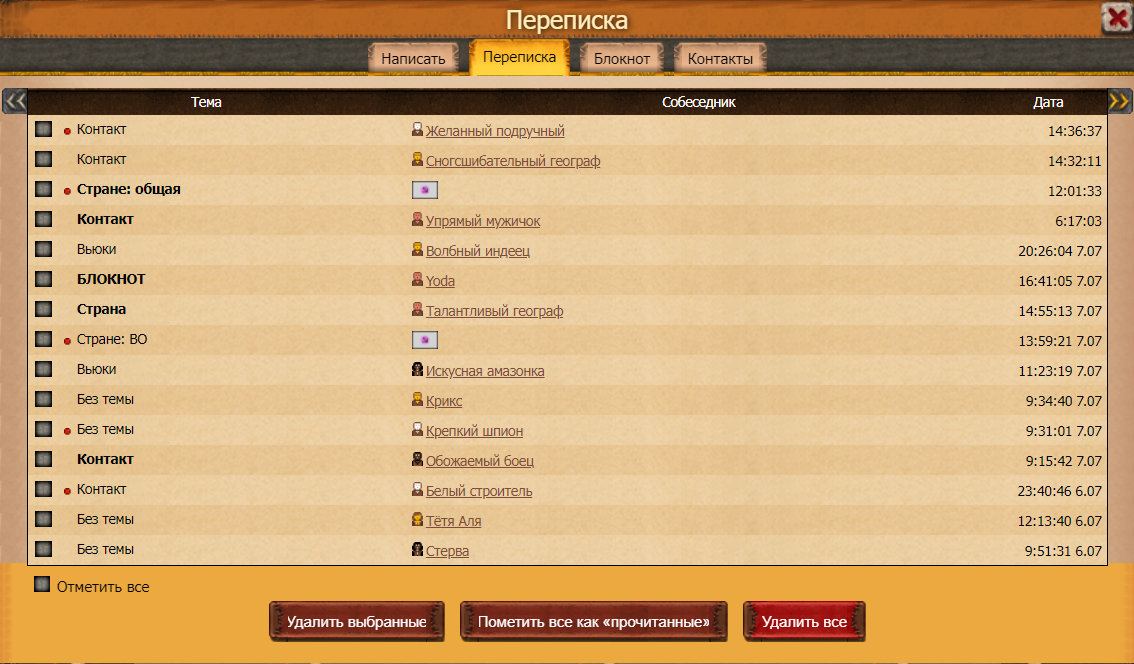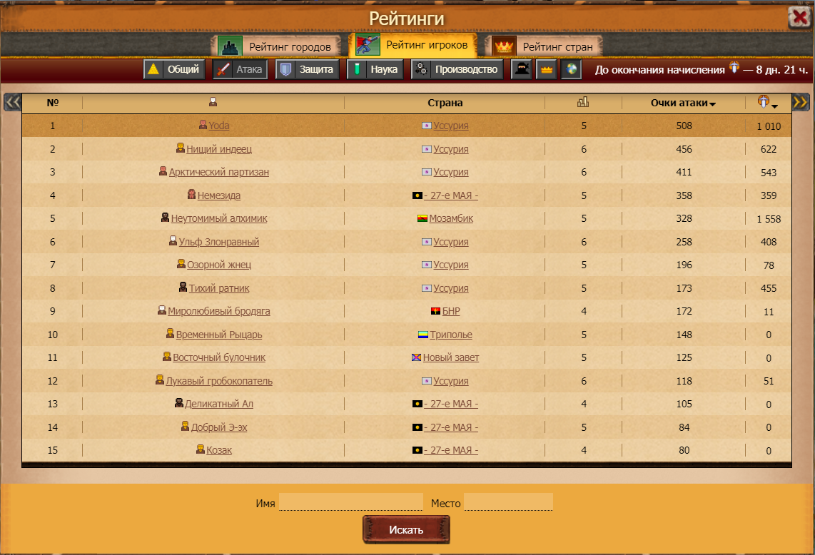 Конкретно на дваче хз, но по идее если тут любители таких стратегий, то должны быть. Я играл в 15, 19, 22 (отказался от места в КК), 55 (отлёт), 60 (отлёт) мирах. И вот сейчас в 63 мире решил неспеша поиграть на континенте где раки всякие играют, типа Триполья.