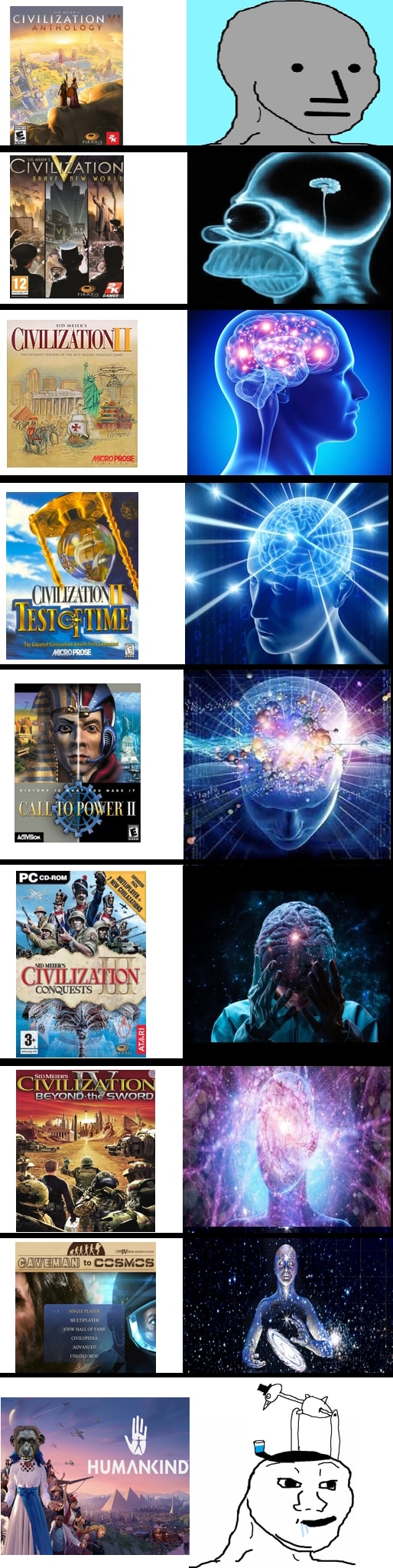 Тред легендарной серии пошаговых стратегий. Обсуждаем все части и срёмся за лучшую Превозмогаем ИИ на божестве, выясняем оптимальную скорость игры и число городов, накатываем моды. Ждём анонса седьмой части на самом деле следующего Петровича.
