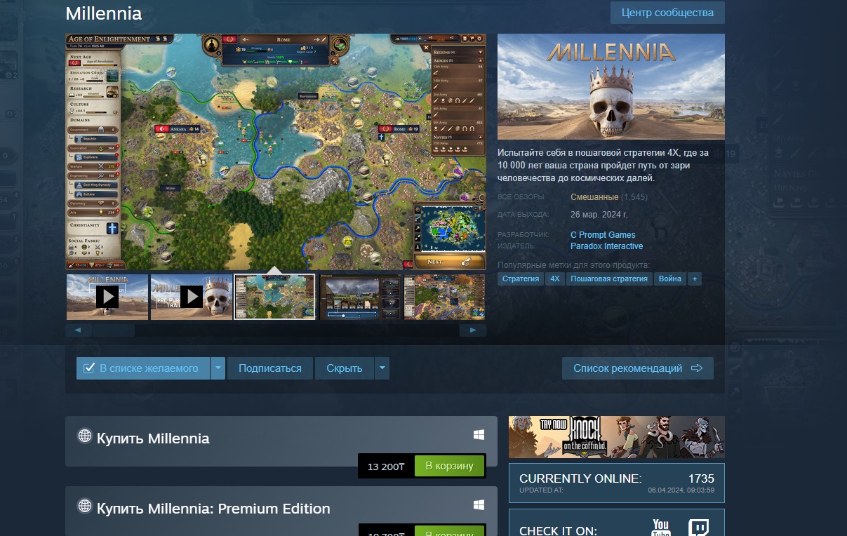 Главная тема: Релизнулось нечто от Параходов под названием Millenia