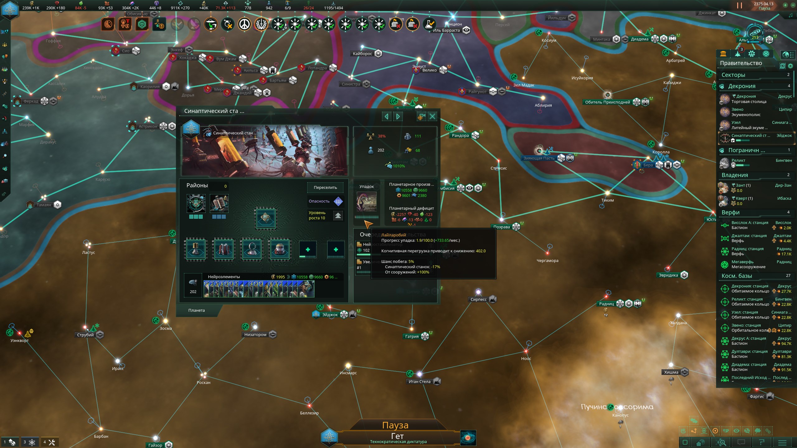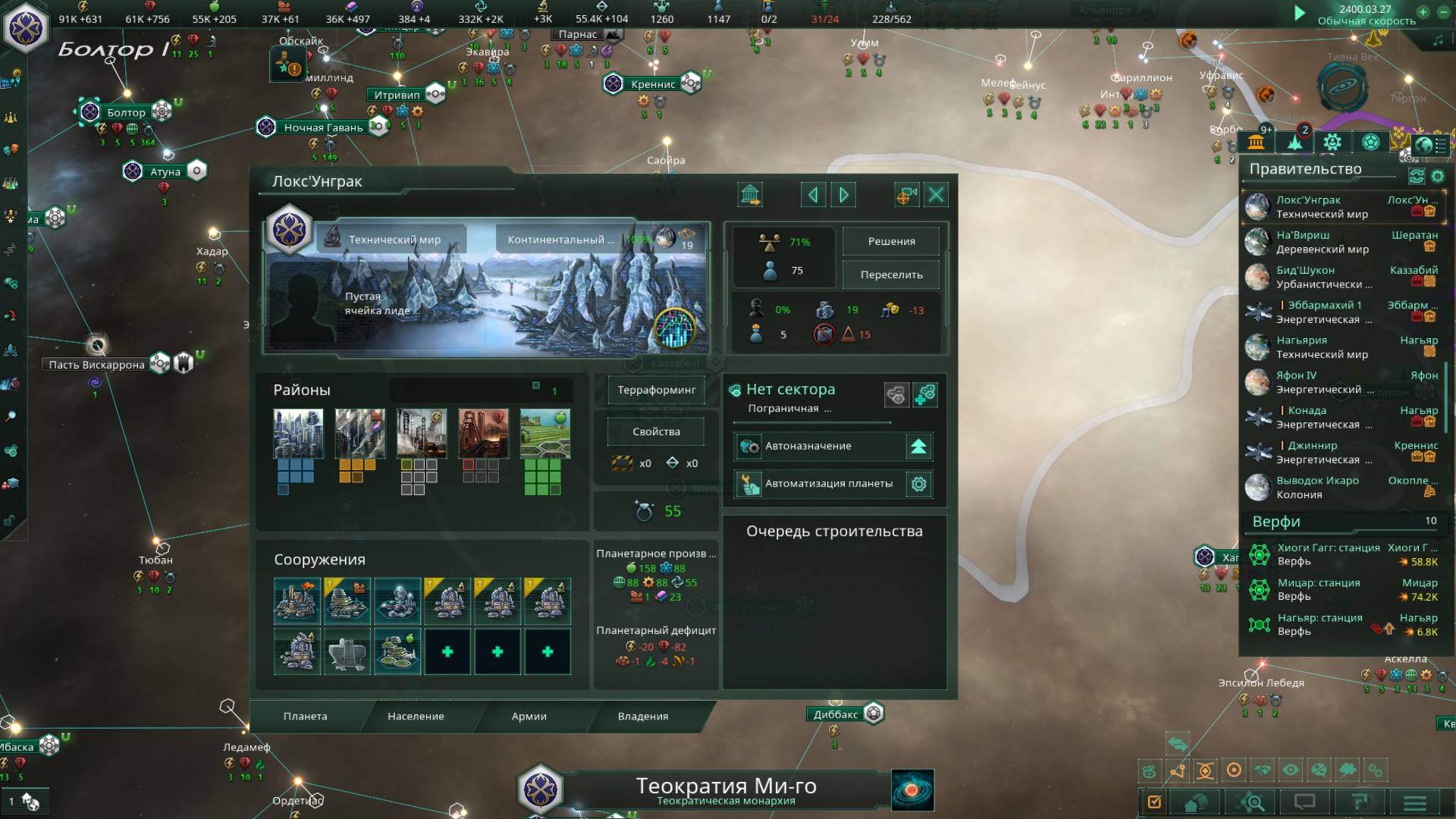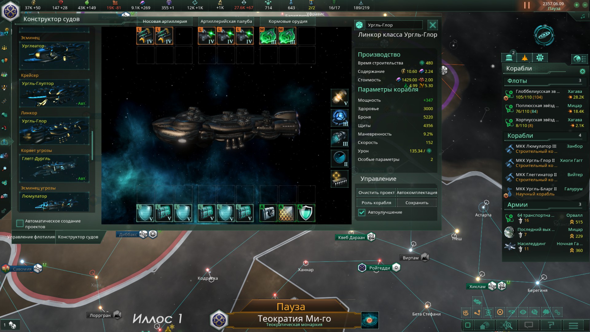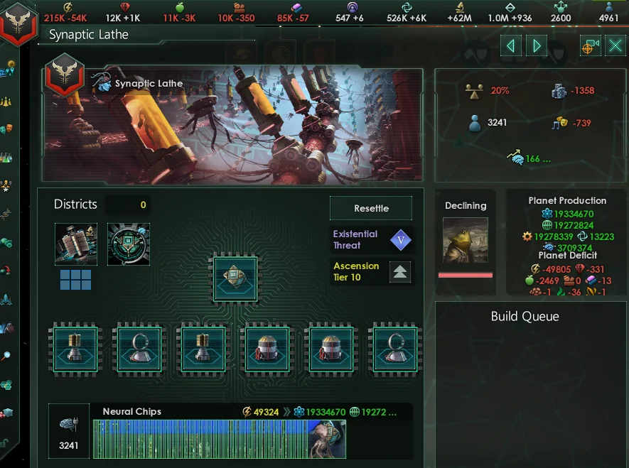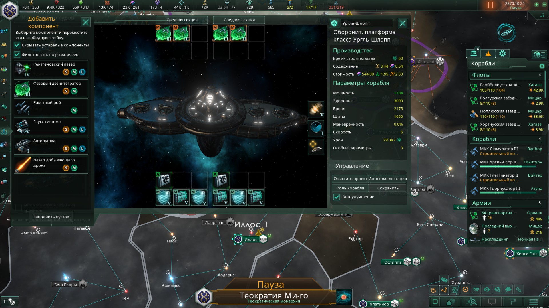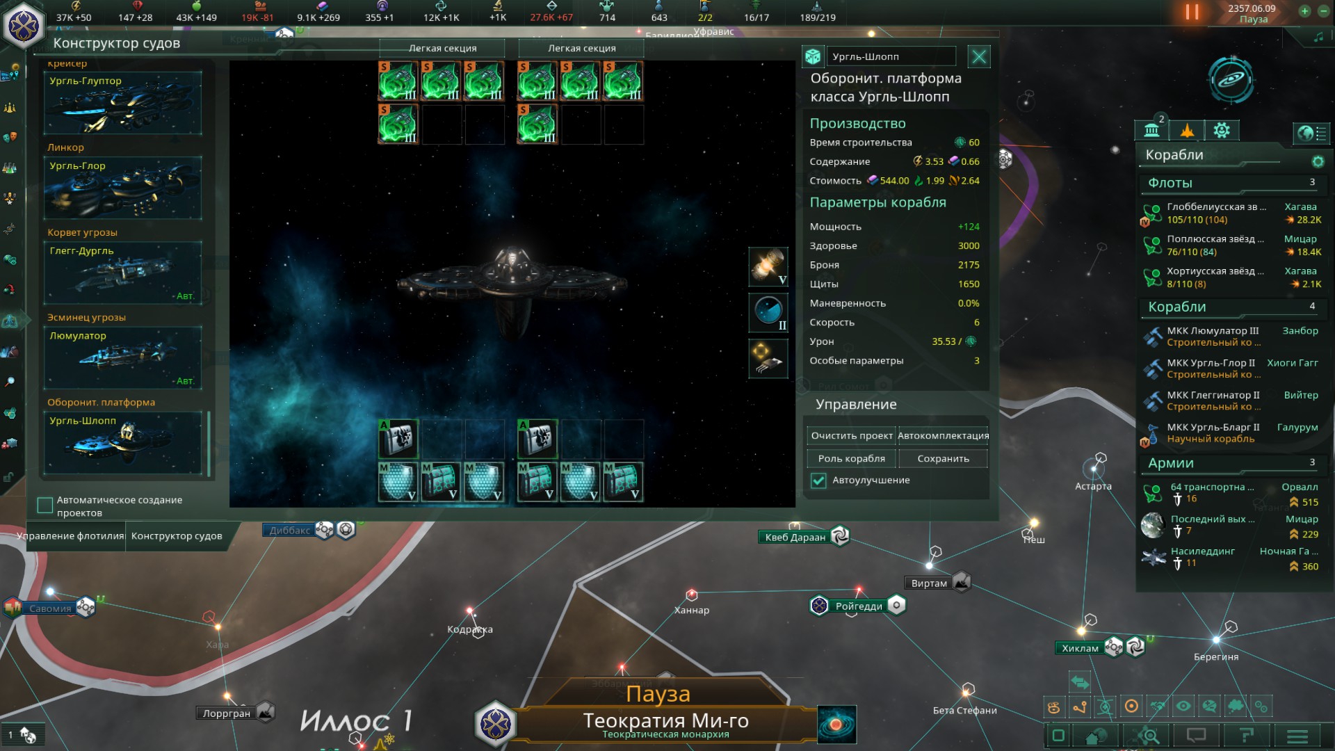 >>1273987 Не дожидайся пока припрёт нужда и надо будет срочно всем сектором строить армии. Выбери планету, ебани её население в >>1273985 или суперсильных и задай производство войск сразу и традиционным способом - многокликов. Потом периодически просто снимай созревший армейский флот с орбиты. Лучшая армия сайбрексы только так и производится, они строятся только в столице и очень неспешно. И это же машинная армия на скрине? Количеством попов не ограничена?