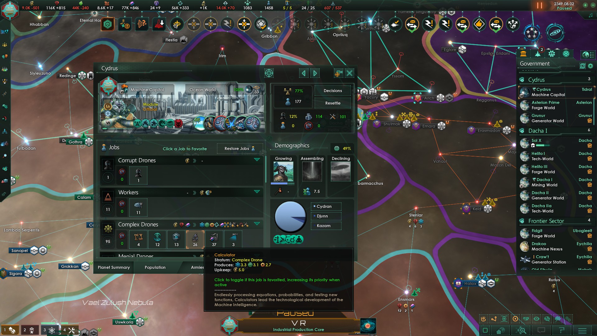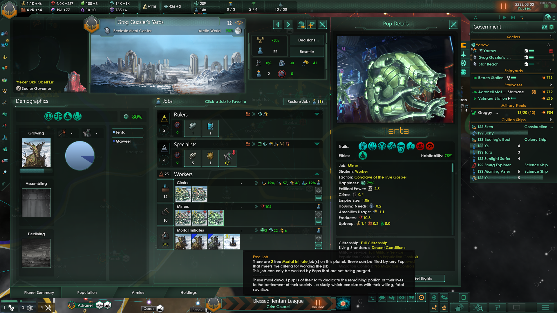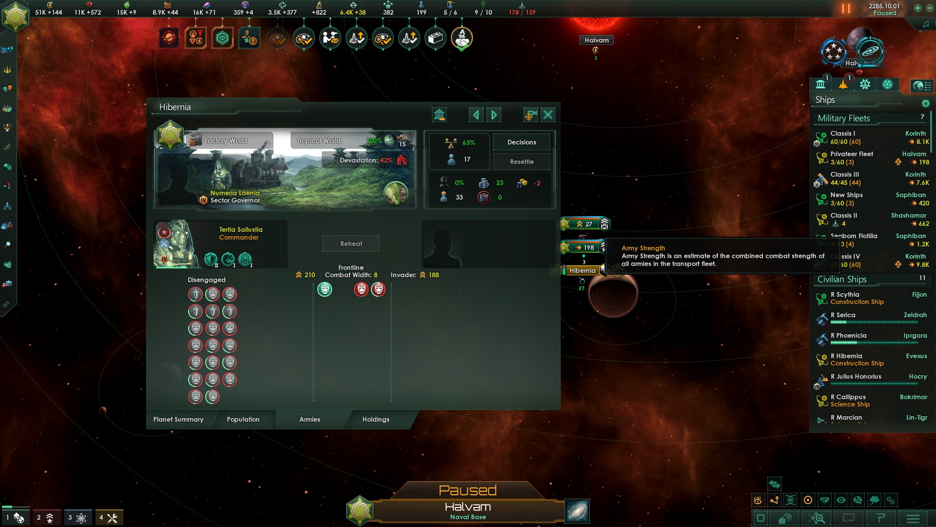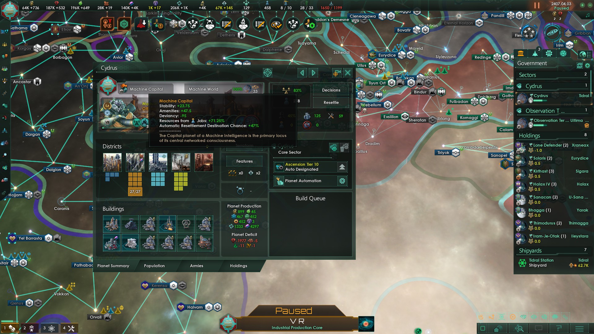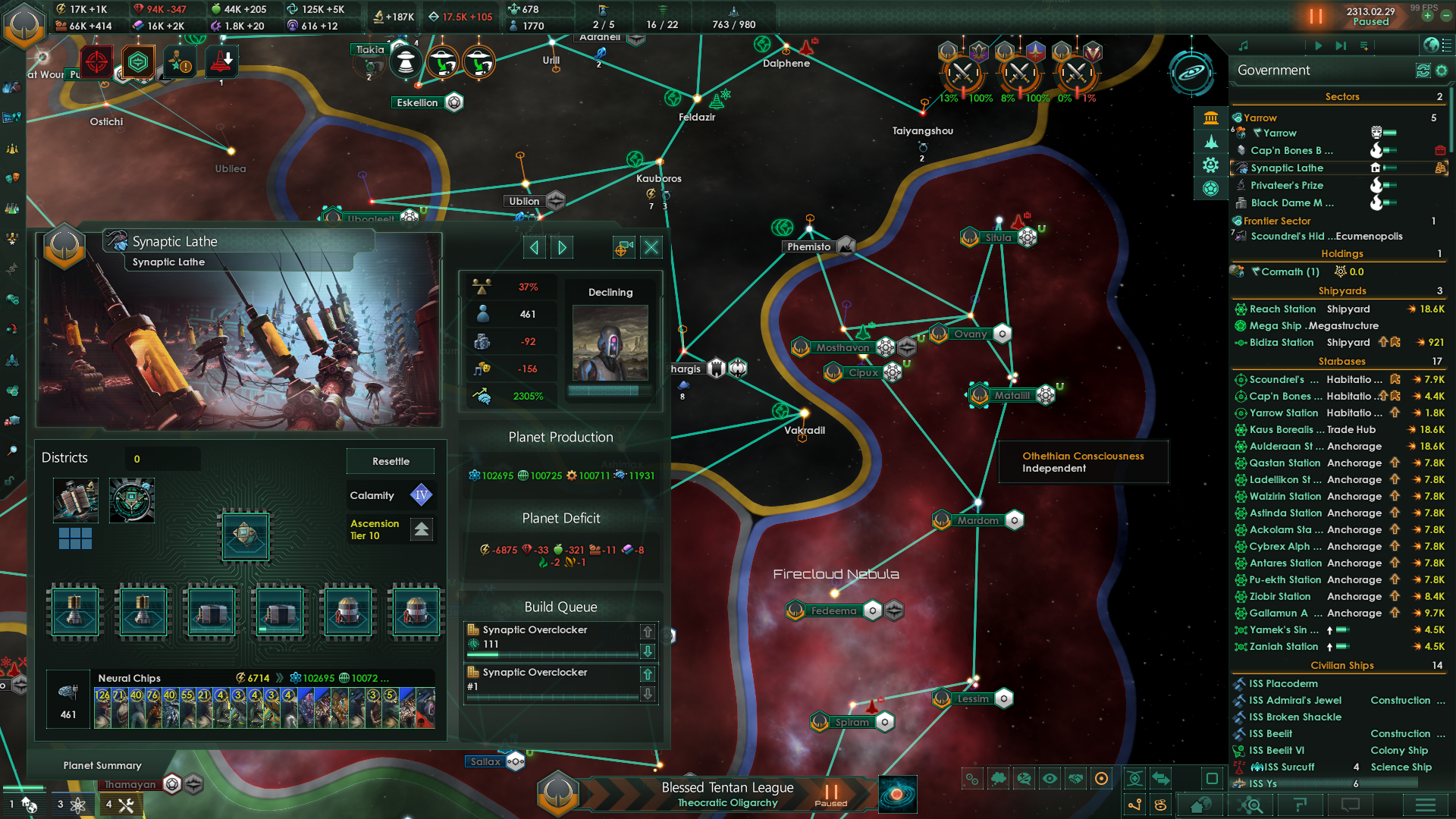 >>1273987 Не дожидайся пока припрёт нужда и надо будет срочно всем сектором строить армии. Выбери планету, ебани её население в >>1273985 или суперсильных и задай производство войск сразу и традиционным способом - многокликов. Потом периодически просто снимай созревший армейский флот с орбиты. Лучшая армия сайбрексы только так и производится, они строятся только в столице и очень неспешно. И это же машинная армия на скрине? Количеством попов не ограничена?