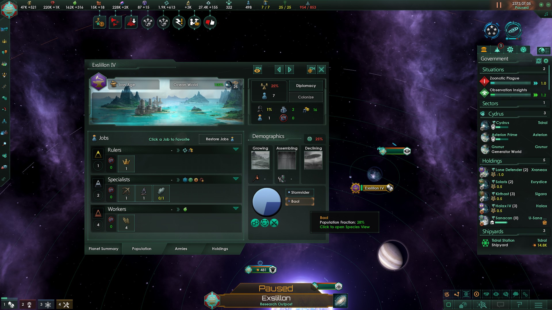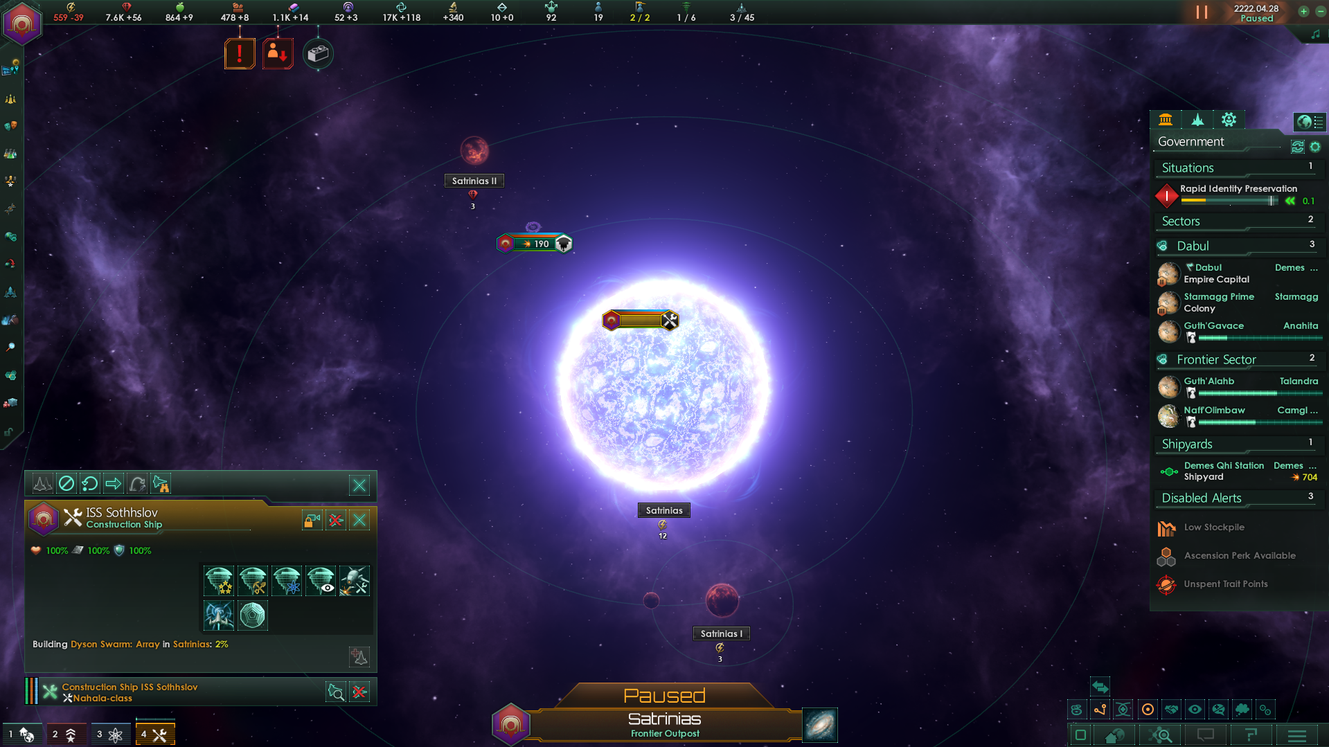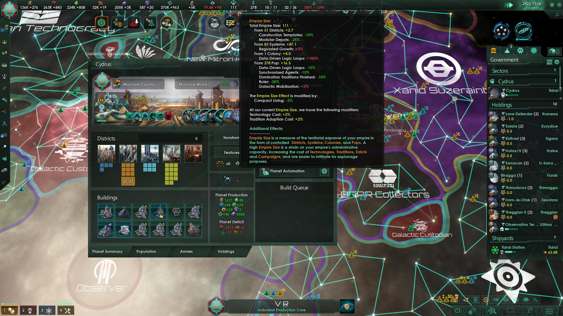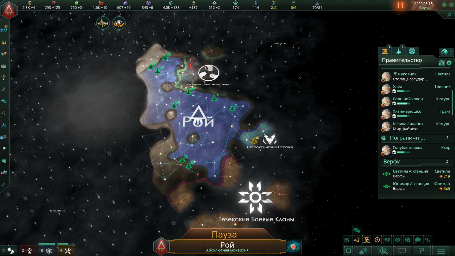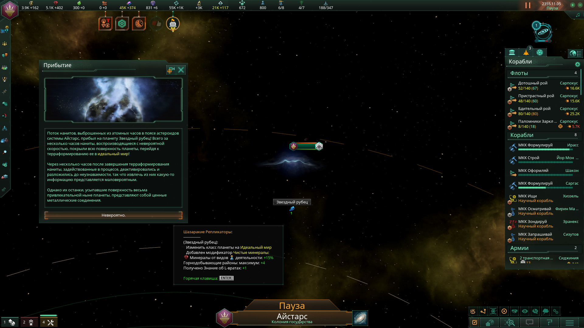 >>1273987 Не дожидайся пока припрёт нужда и надо будет срочно всем сектором строить армии. Выбери планету, ебани её население в >>1273985 или суперсильных и задай производство войск сразу и традиционным способом - многокликов. Потом периодически просто снимай созревший армейский флот с орбиты. Лучшая армия сайбрексы только так и производится, они строятся только в столице и очень неспешно. И это же машинная армия на скрине? Количеством попов не ограничена?