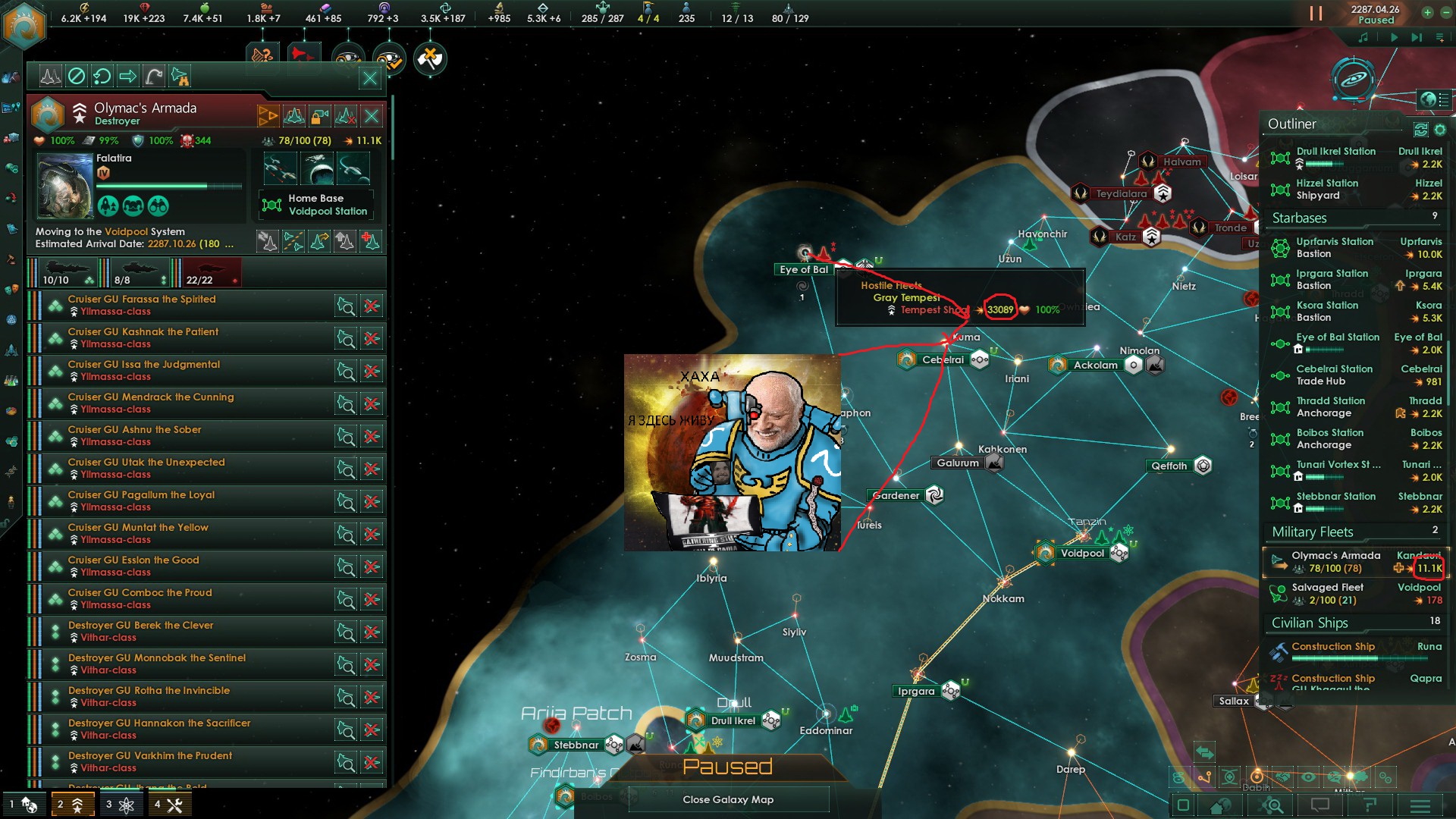 ТЫ КОСМОАДМИРАЛ, КОМАНДУЕШЬ КАМПАНИЕЙ ЧЕЛОВЕЧЕСТВА ПРОТИВ КОСМОЖУКОВ С БОРТА ЭКСЕЛИОНА - КРУПНЕЙШЕГО И СИЛЬНЕЙШЕГО КОСМИЧЕСКОГО КОРАБЛЯ КОГДА-ЛИБО ПОСТРОЕННОГО ЧЕЛОВЕЧЕСТВОМ @ ПОКА ТЫ ШАРОЁБИЛСЯ ПО ГАЛАКТИКЕ НА ОКОЛОСВЕТОВЫХ СКОРОСТЯХ, ДЛЯ ТВОЕГО ФЛОТА ПРОШЛИ МЕСЯЦЫ, НА ЗЕМЛЕ - ДЕСЯТИЛЕТИЯ @ ТЕБЕ ПОДГОНЯЮТ НОВЫЙ ФЛАГМАН - В ДЕСЯТЬ РАЗ БОЛЬШЕ ПРЕДЫДУЩЕГО И ЛЕТАЮЩЕГО НА КАКИХ-ТО НОВЫХ НЕПОНЯТНЫХ ФИЗИЧЕСКИХ ПРИНЦИПАХ @ И К НЕМУ ФЛОТ, В НОВОМ ФЛОТЕ КОРАБЛИ КЛАССА "СУПЕР-ЭКСЕЛИОН" ИГРАЮТ РОЛЬ ЭСКОРТНЫХ ЭСМИНЦЕВ