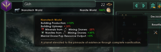 Попробовал нанонитов, и это просто пиздец. Возвышение, заточенное под широкую игру, которое отбирает у тебя автоматизацию планет. С каждым апдейтом длц всё больше вопросов появляется, а дегенераты из парадоксов они, ну, в свои игры играют то? Или они думали что сидеть и мониторить 40 планет это пик геймплея?