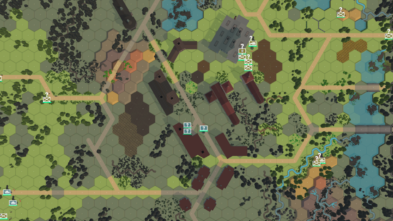 Хотя по последнему могут быть и исключения. К примеру, здесь лес и домики занимают весь гекс, и, соответственно, всем гексом ограничивают линию видимости — даже в настолках объекты могут быть меньше гекса. Тоже касается и передвижения в такой гекс: в SL можно войти в гекс и выбрать ландшафт, к примеру, в гексе со строением строение обойти, не входя в него.