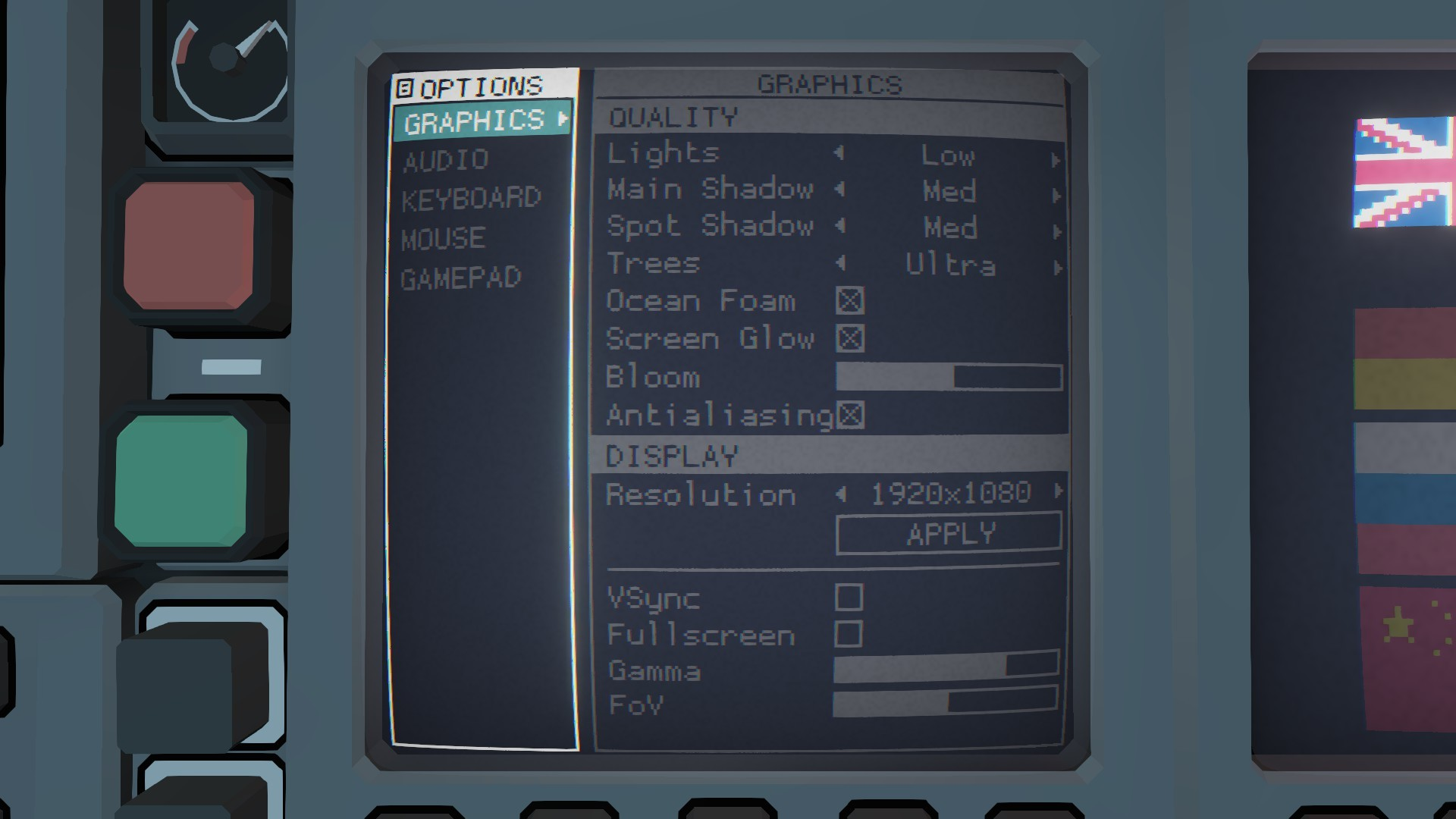 The lower console has 3 multifunction displays which can be set up to the players preference, engine controls and dials, fuel information, rudder, throttle, control mode and gear controls, signalling and illumination lights.
