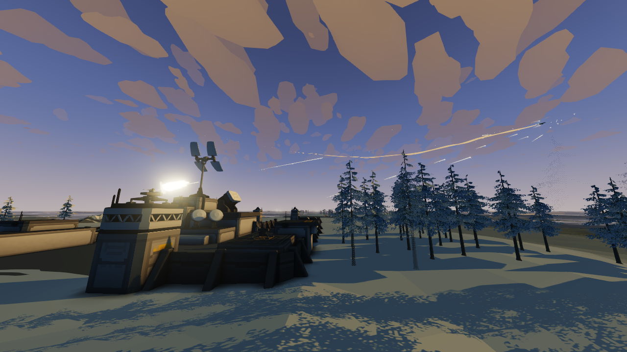 The next type of fire support available from the carrier is a cruise missile. The missile has very high range and can fly for many kilometres before reaching it's target. The payload is significant, but smaller than the howitzer shells. The weapon is highly accurate and will track the laser target, with enough blast radius to destroy multiple vehicles should they be close enough together.